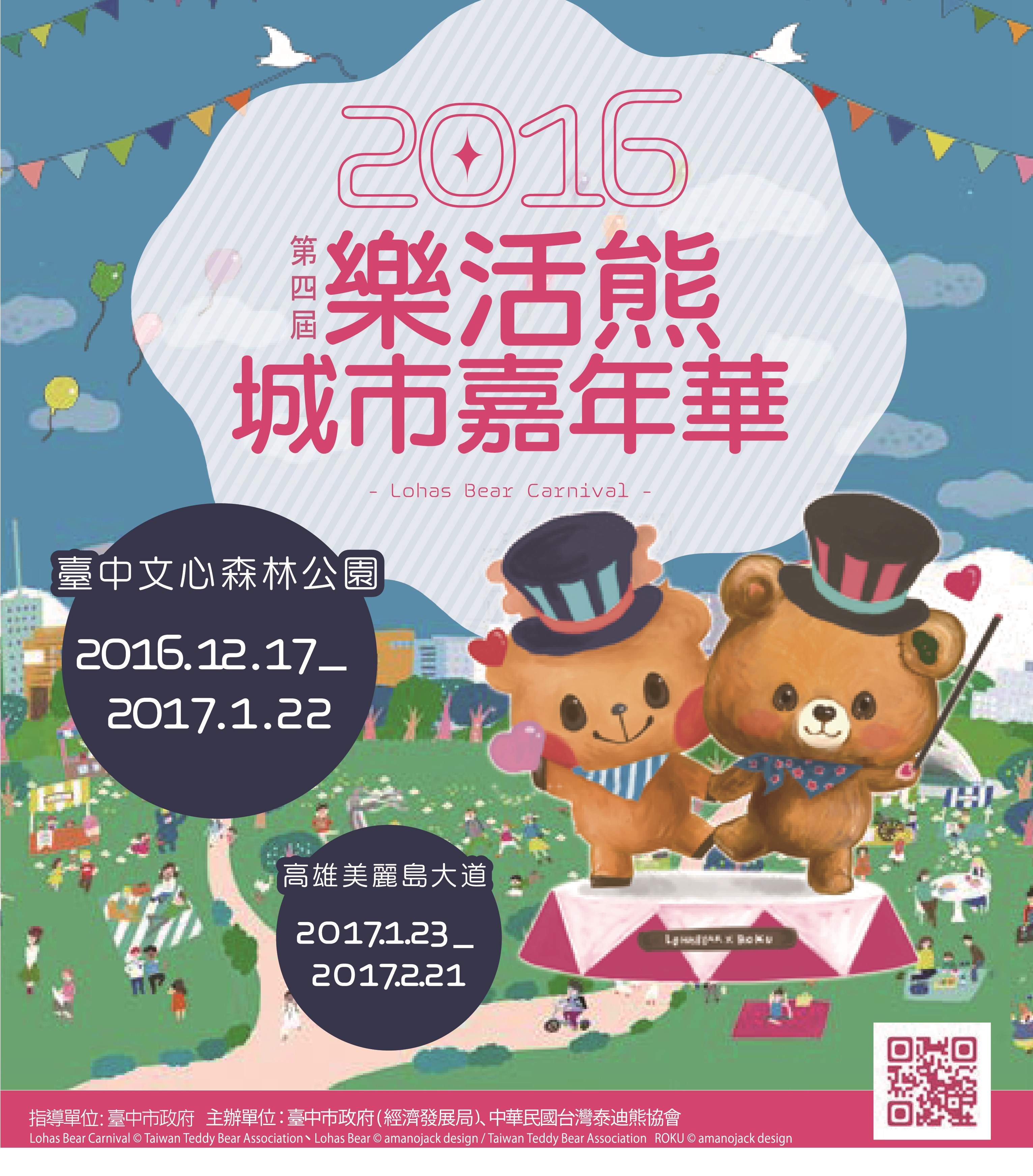 2016「第四屆樂活熊城市嘉年華」,12月17日至明年1月22日在台中文心森林公園登場,今年以「友誼」為主題,百座樂活熊以俏皮地舉起右手及抬起左腳的「動態姿勢」亮相;也與彩虹爺爺黃永阜合作,透過他的彩繪,帶領大家尋找台中土地的熱情,展現在地故事。