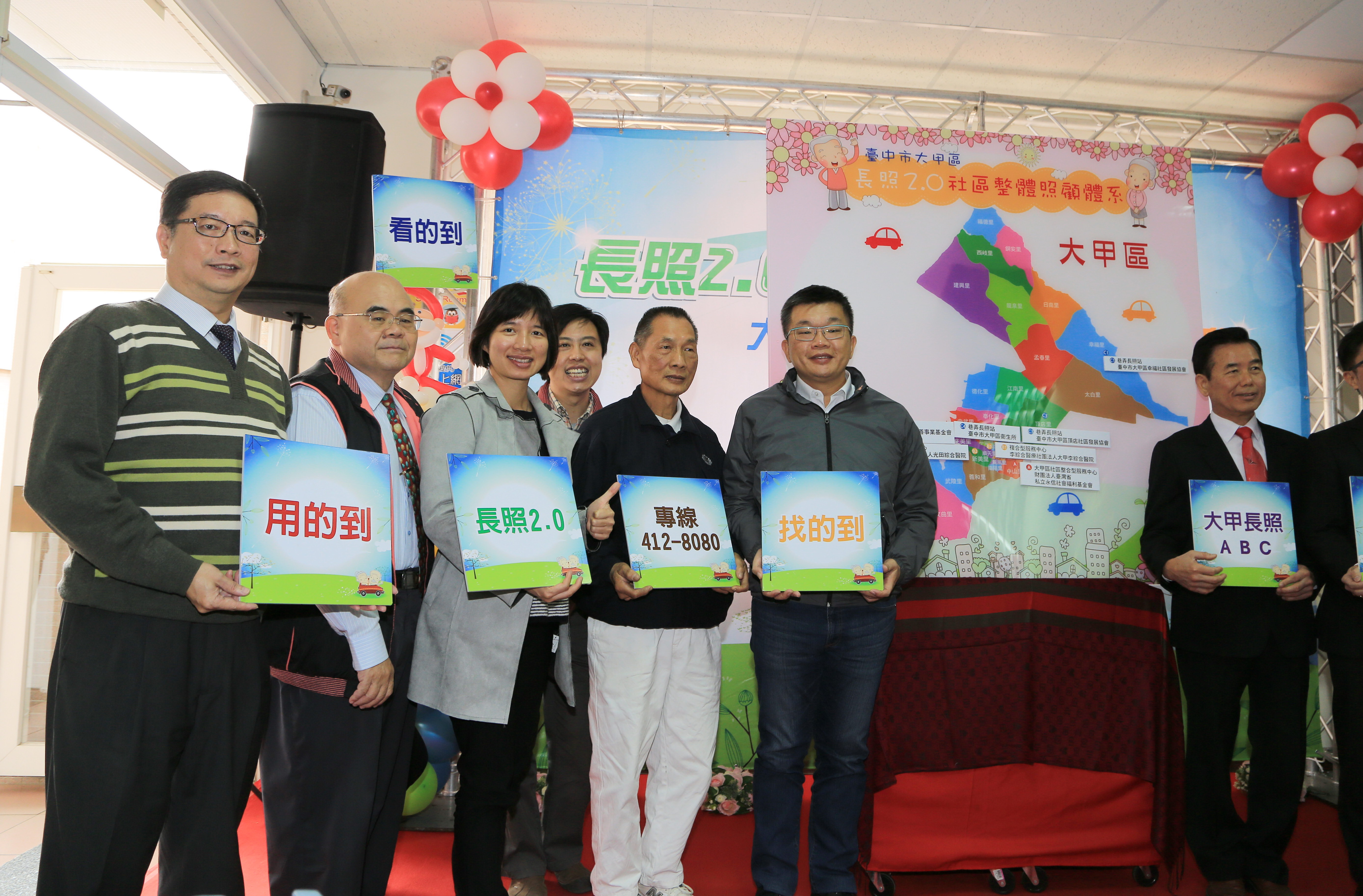 今日掛牌儀式,包括林副市長、立法院副院長蔡其昌、市府社會局長呂建德、衛生局副局長張瑞麟、大甲區長劉來旺、市議員吳敏濟、議長林士昌服務處代表、市議員李榮鴻及林素眞服務處代表、永信基金會執行長趙明明、李綜合醫院副院長林榮輝、光田綜合醫院副院長黃明國、慈濟基金會發展處主任呂芳川、頂店社區發展協會理事長周素環、多位里長等人都出席,見證大甲長照2.0服務據點試辦啟用。