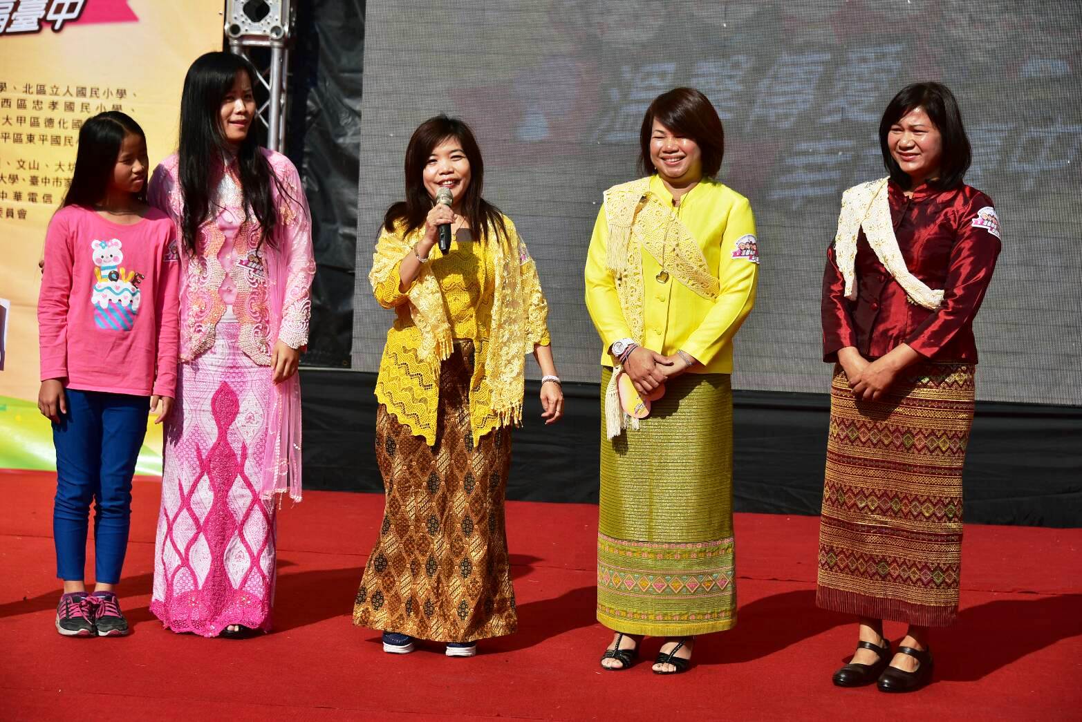 今日活動由台中市海區新住民學習中心的戰鼓表演揭開序幕,共計8場新住民動態表演節目,熱鬧精彩,主辦單位更安排新住民著傳統服裝偕同家人上台發表來台生活感言,並以東協國家熱門觀光景點布置活動會場,讓民眾合影留念,現場充滿濃厚異國風情。