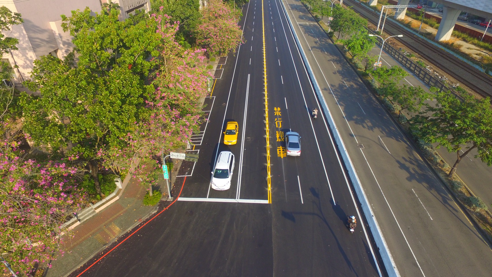 接著於11月底完成第二階段工程,改善側溝約100公尺、孔蓋下地75處、調平32處,確保路面刨鋪線型筆直且平順,大幅提升道路平坦度;第三階段進行全路段道路刨封工程,配合台中地方法院耐震補強工程完工,施工圍籬拆除完畢後,於本月10日動工、18日已完工通車。