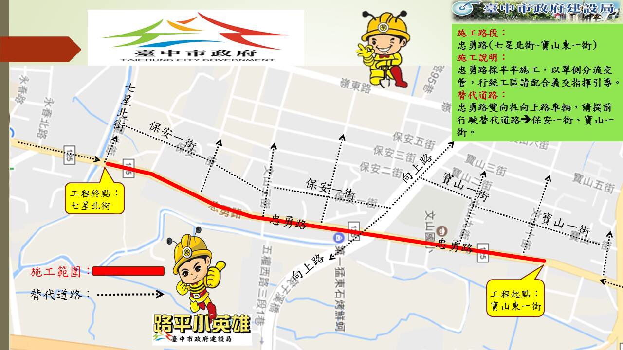為免造成交通衝擊,並減少施工過程造成民眾進出不便,建設局施工、監造團隊已於忠勇路周邊擴大辦理交通維持,並設置施工標誌及替代道路指示標誌,也配置義交協助交通指揮與指引,維護交通順暢。此外,施工單位也委託警廣協助宣導道路施工資訊,提醒駕駛民眾避開施工路段。(12/28*7)*建設局