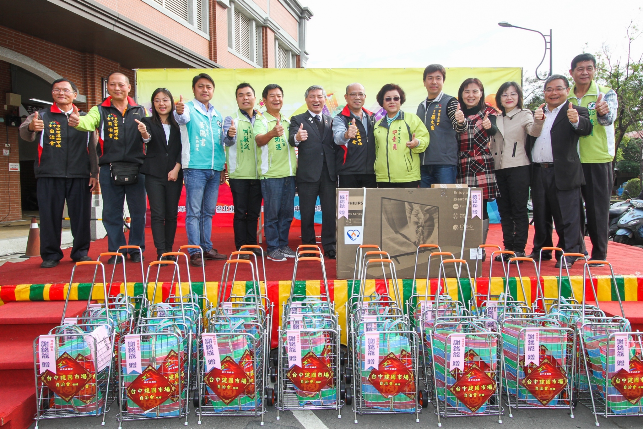 此外,建國市場自治會也響應活動,加碼提供1台42吋液晶電視,與100台菜籃車與傳統環保購物袋「茄芷袋」,自治會會長蔡鈴欽說,感謝市府團隊將摸彩活動設在建國市場,因此特別加碼,未來自治會也會陸續舉辦活動,讓市場越來越熱鬧。