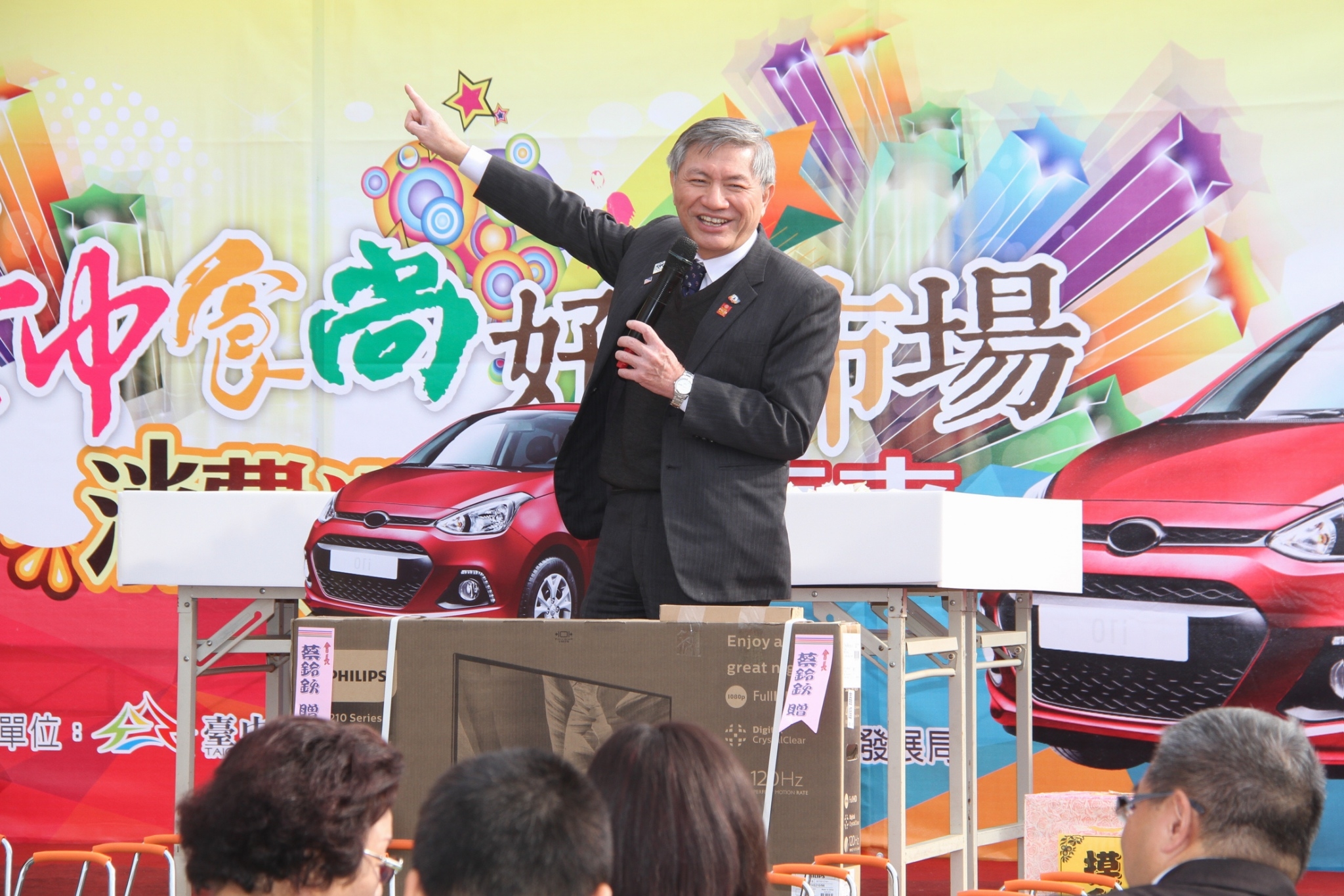 今日的活動由張副市長、市議員邱素貞、鄭功進、經濟發展局主任秘書蔡珍珍、建國市場自治會會長蔡鈴欽等人一同抽出,立法委員黃國書、市議員何敏誠也派代表出席一同見證,眾人在律師見證下,從1萬5千多張的抽獎券中,抽出大獎價值45萬元的現代i10汽車。