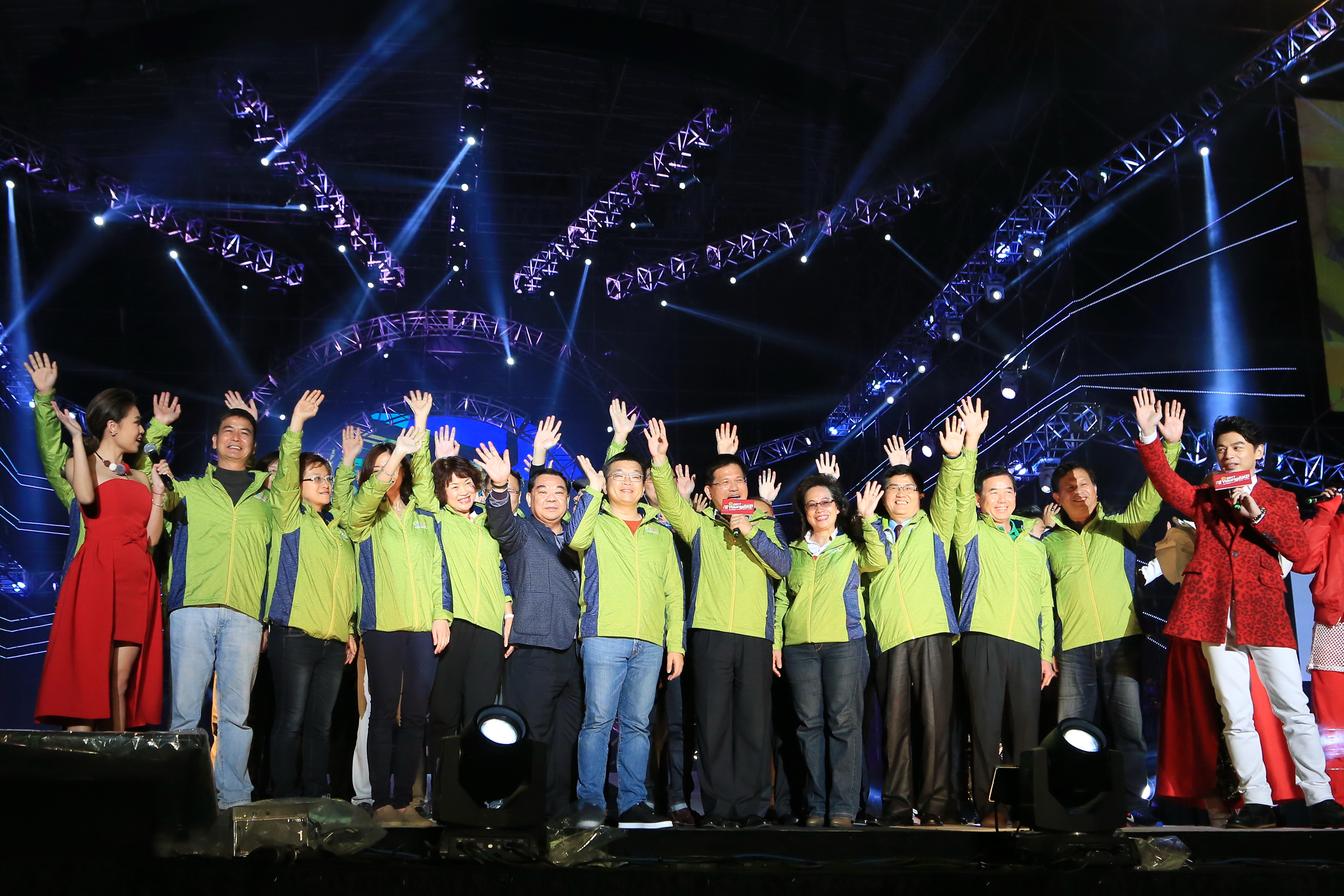 林市長表示,今晚雙主場都大爆滿,很高興大家來到台中跨年,在跨年之後台中市就要準備2018世界花卉博覽會各項工作;祝福大家新的一年心想事成,也希望新的一年無論是愛人或被愛,都能相加相乘,每個人都充滿希望與勇氣,金雞報喜,掌握先機!