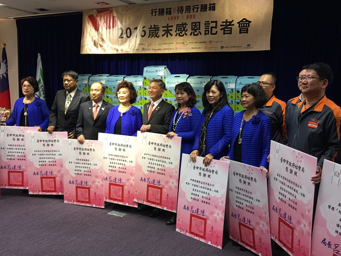 台中市工商婦女企業管理協會與台灣公益CEO協會支持串連,從105年10月開始以「行膳箱×待用行膳箱」的行動,提供社福家庭友善土地種植的農產品,並由嘉里大榮物流協助配送,深獲各界好評。(1/3*8)*社會局