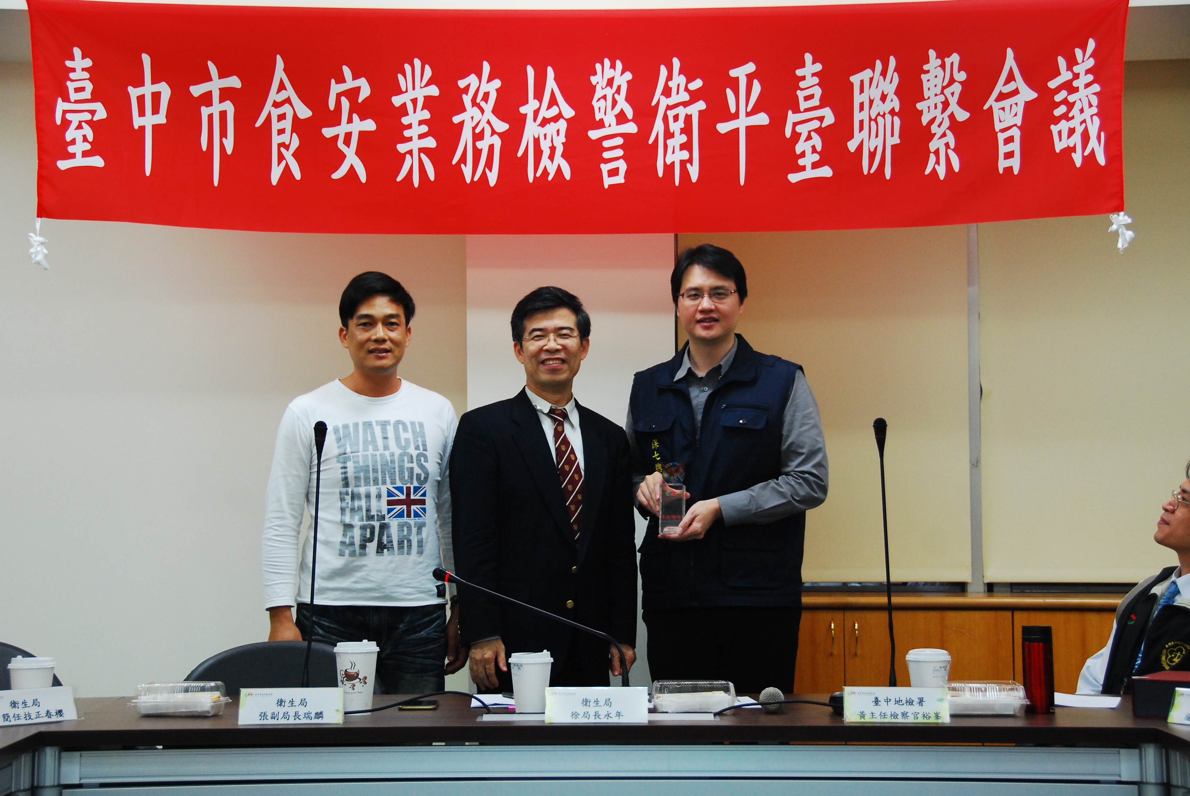 市府衛生局於日前舉辦106年度第1次食安業務檢警衛聯繫平台會議,會中除報告食品安全不法查緝成效及未來策進作為外,並由衛生局長徐永年頒發獎座感謝台灣台中地方法院檢察署及保七總隊第三大隊第二中隊在台中市食安查緝上的協助,共同為市民飲食安全努力。