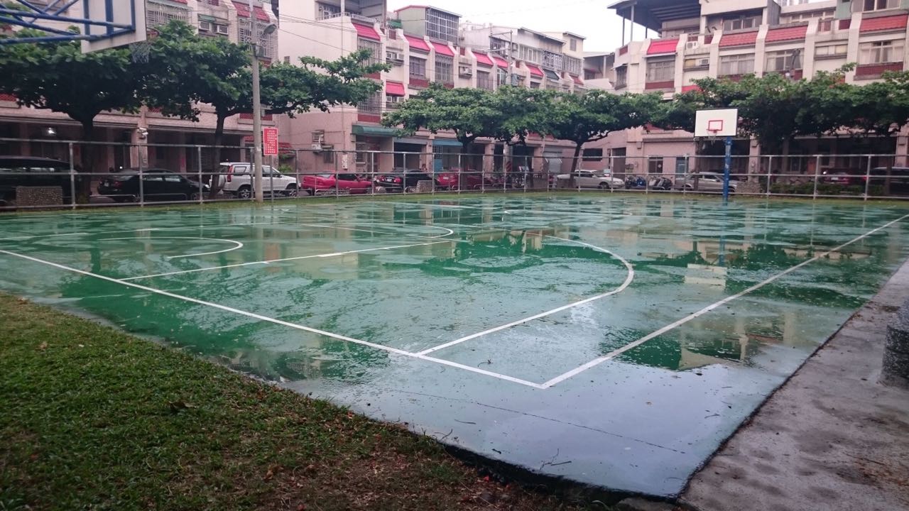 建設局說明,長億公園籃球場水泥地曾在103年度以PU改善局部表面,但因沒有調整洩水坡度,導致大雨過後有積水情形;兒童遊憩設施如溜滑梯、搖搖馬、公園籃球場的石桌、步道地磚等設施,也因年久失修,有破損情形。