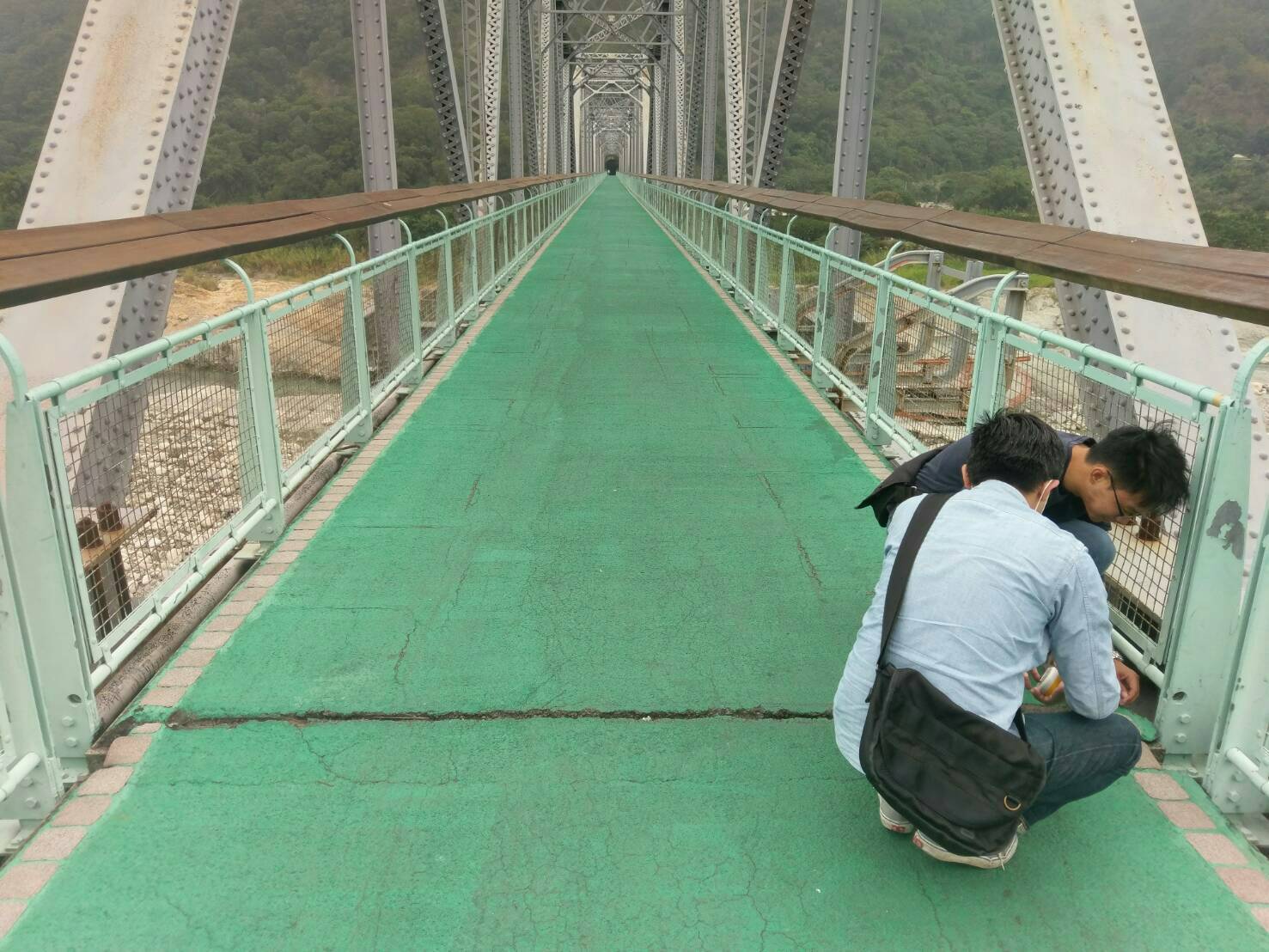 花梁鋼橋為鋼桁梁橋結構,橋長382.2公尺、寬7.67公尺,觀旅局均定期維護及監測,105年也委託專業顧問公司及專業技師進行橋梁結構安全評估。近日有民眾反映橋面有水泥裂縫,市府昨(12)日再會同專業顧問公司前往檢測橋梁結構。