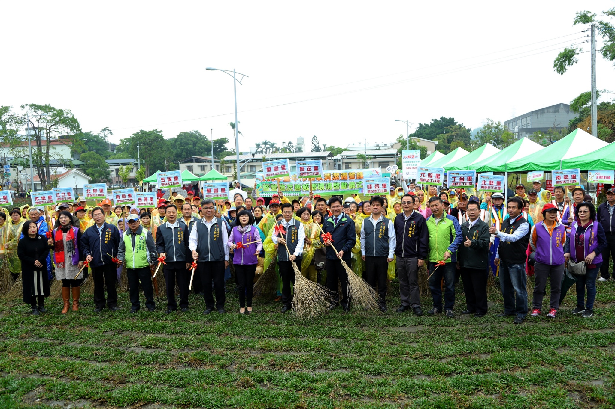 迎接農曆新年,106年「國家清潔週」台中市誓師活動今(14)日於霧峰區阿罩霧公園熱鬧展開,市長林佳龍率領約540名環保志工誓師,同時啟動霧峰區營造友善城鄉環境計畫,推動空地綠美化;他表示,擁有清淨家園就從週遭生活綠美化做起,提醒民眾清掃住家周圍髒亂死角及病媒孳生源,除舊佈新,迎接清新好年。