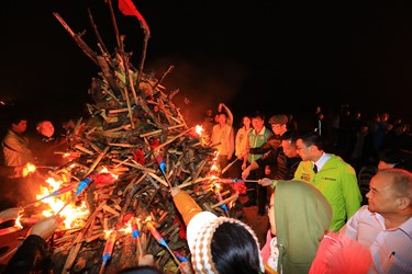 這場送鼓神儀式今(18)晚在震天戰鼓聲中於大肚山麓隆重登場,九天民俗技藝團團長許振榮傳遞引自九天娘娘的聖火,眾人手持火把,將堆積的打壞大鼓及斷鼓棒點燃祭祀,感謝九天娘娘過去一年來的庇佑。包括市府新聞局卓局長、文化局副局長施純福、立法委員洪慈庸、市議員王立任、市議員張雅旻服務處代表、彰化縣政府文化局長陳文彬等人均到場共襄盛舉。
