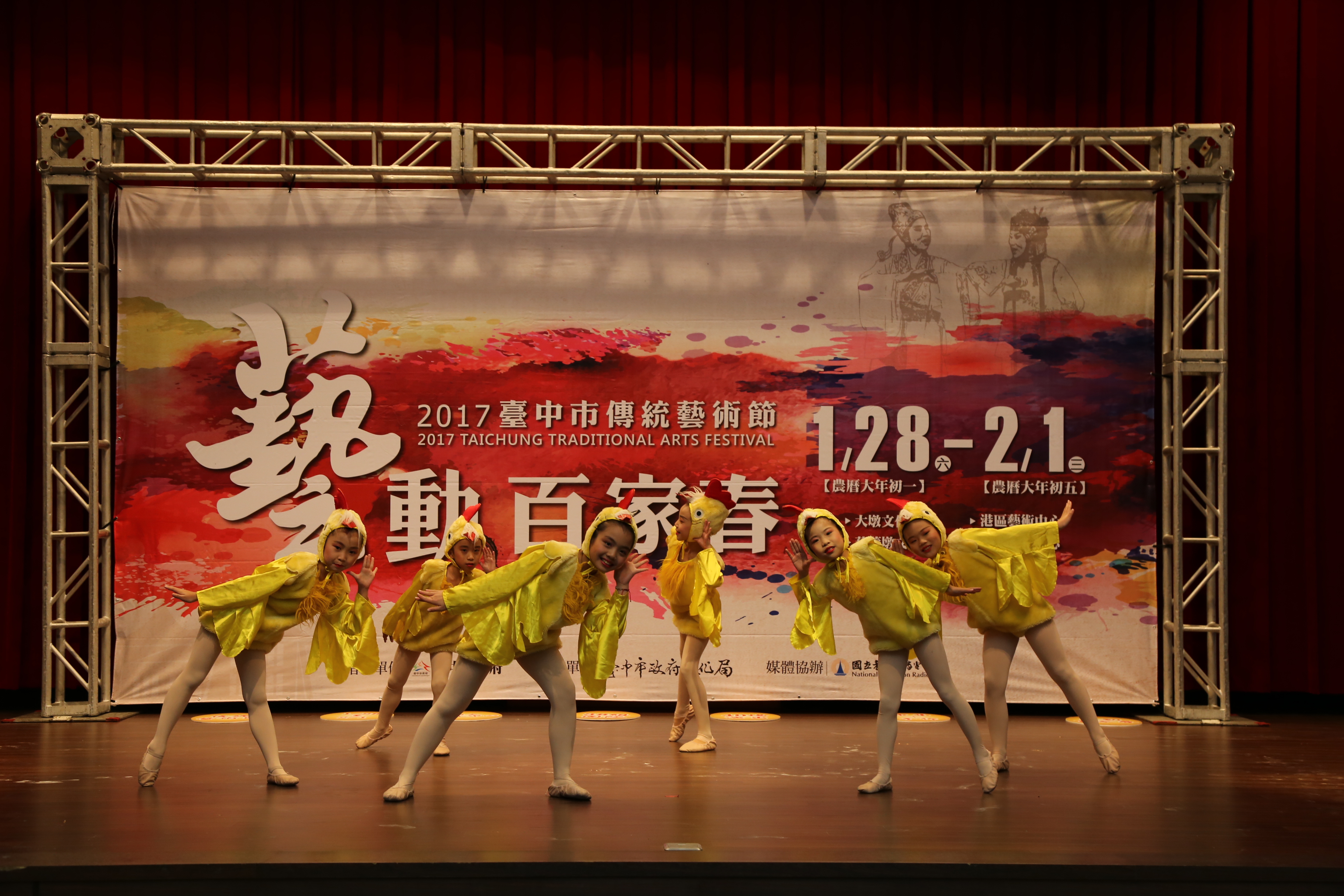 市府文化局今(19)日舉辦「2017台中市傳統藝術節」記者會,副秘書長郭坤明在文化局長王志誠的陪同下出席,現場除有威勁龍獅武術戰鼓團帶來精采演出,更有小朋友打扮成可愛的小雞帶來舞蹈表演,氣氛活潑熱絡。