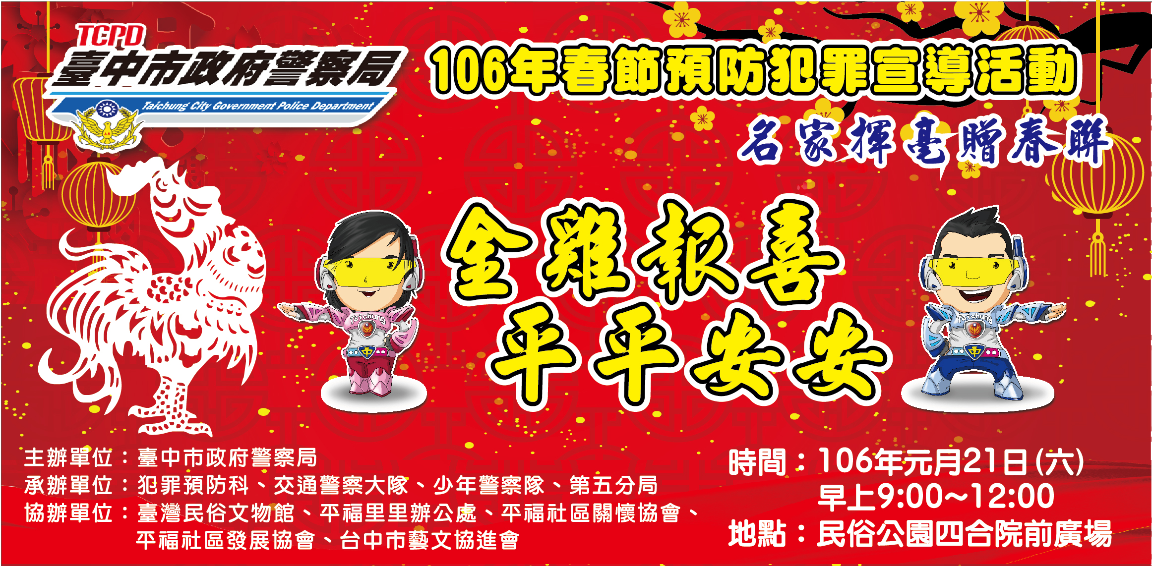 為傳承與推廣客家文化藝術,並深耕東勢客庄濃厚的人文底蘊,這次「金雞報喜─新春客藝展」新春客藝展展出劉曉邨、傅茂金、鄭光倫、張自強、陳誼芝等10位藝術大師書畫作品,結合客家音樂、藝術、文創、產業、美食等,讓更多朋友看見大埔客家文化豐富精采的人文藝術。