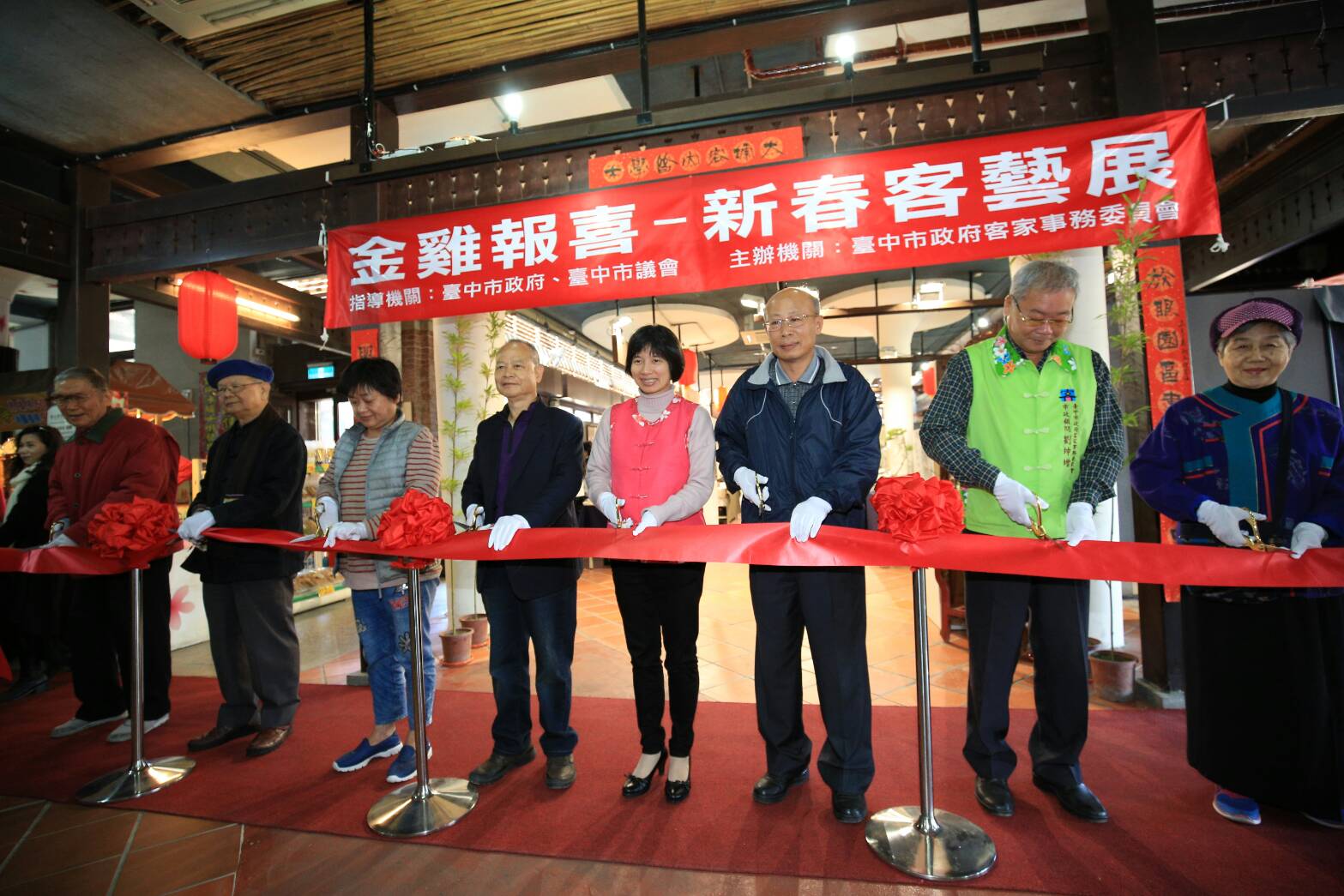 為開創台中山城客庄地區人文藝術、並活化東勢客家文化園區發展,市府客家事務委員會今(22)日起至2月19日在東勢客家文化園區展出「金雞報喜─新春客藝展」,今日並舉行開幕茶會。副市長林依瑩表示,東勢展現台灣最美的風景,可讓人感受到濃濃的客家人情味。