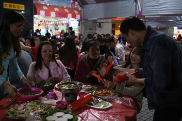 今日圍爐活動有張副市長、市議員江肇國、中區區長黃至民、經濟發展局專門委員江振偉,以及主辦單位台中市東協廣場管理委員會主委蔡忠和、繼光商圈管理委員會主委張進鑫、新移民協會理事長麥玉珍等人到場,與所有越南新移民、移工一起用餐。