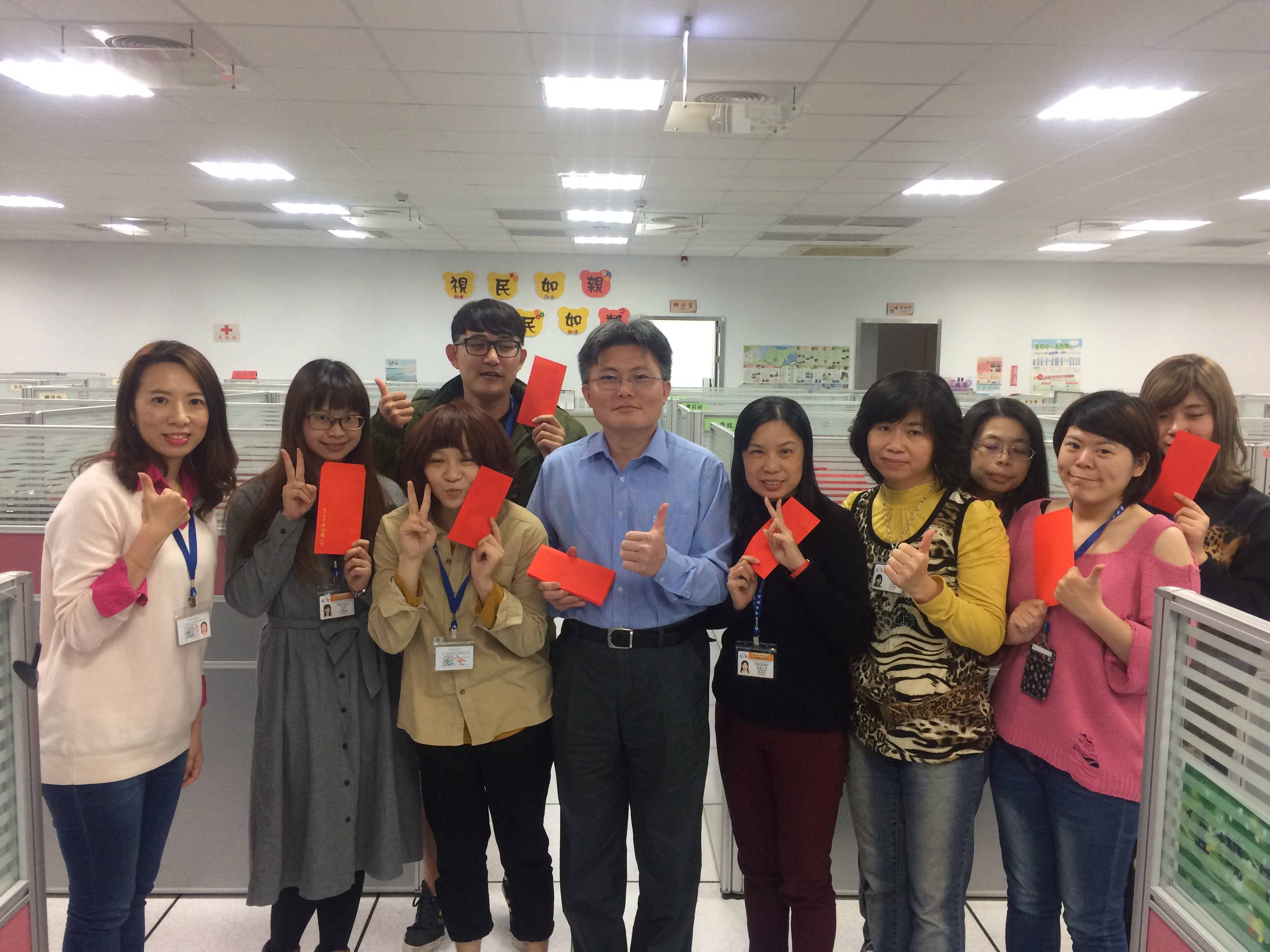 今(27)日除夕,柳主委親自到話務中心慰勉同仁辛勞,並代表市長致贈春節慰問金,感謝全體話務同仁犧牲放假,為市民堅守第一線的服務。