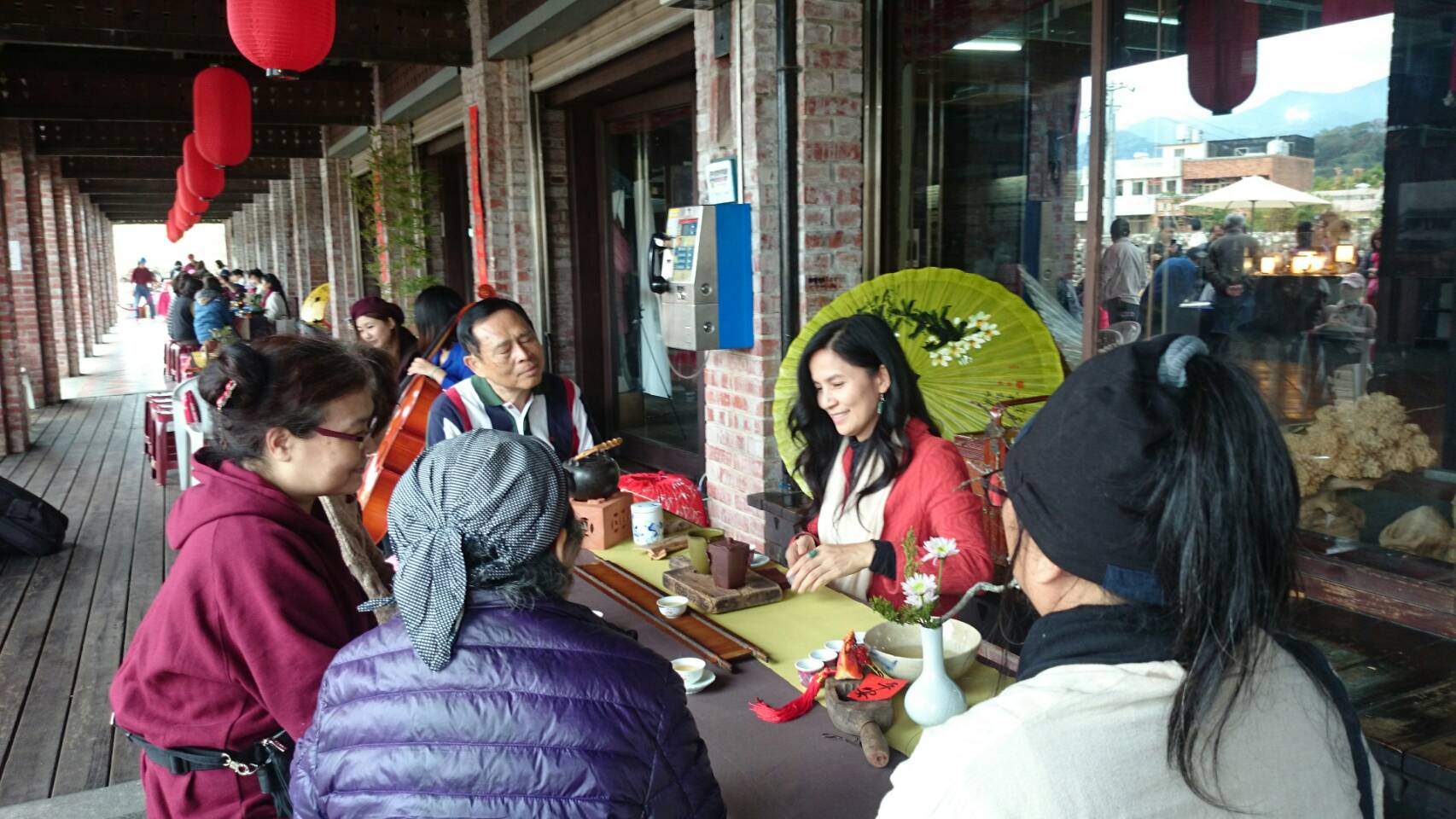 東勢客家文化園區茶席現場邀請宋鈺惠、江欣穎、陳芳荺等多位音樂家,分別帶來大提琴、二胡及笛子等精采演奏,遊客可一邊欣賞清新悠揚的旋律,一邊品嘗茶香與濃濃的客庄年味。