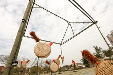 而台灣個人首位獲得德國iF設計獎的設計師周育潤,為傳達花博自然永續發展的精神,以中部見長的竹編工藝,結合可以環保再利用的素材,製作出「安雞樂業」燈屋。