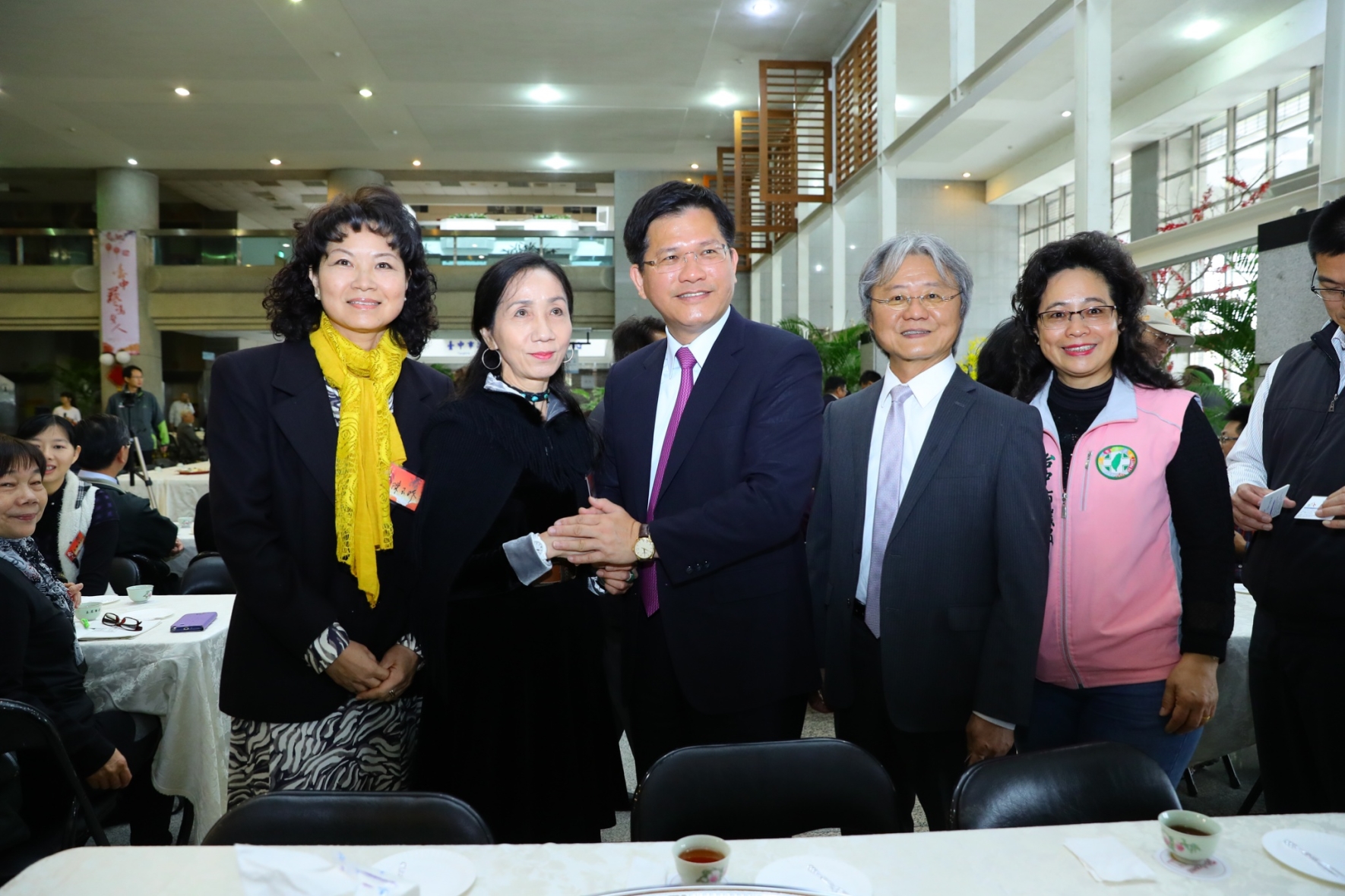 台中市政府文化局今日在豐原陽明市政大樓舉辦新春團拜茶會,包括林市長、文化局長王志誠及張自強、曾得標、黃書文、袁國浩等藝文界人士,與總統府國策顧問翁金珠、國立台灣美術館館長蕭宗煌等人均共襄盛舉。