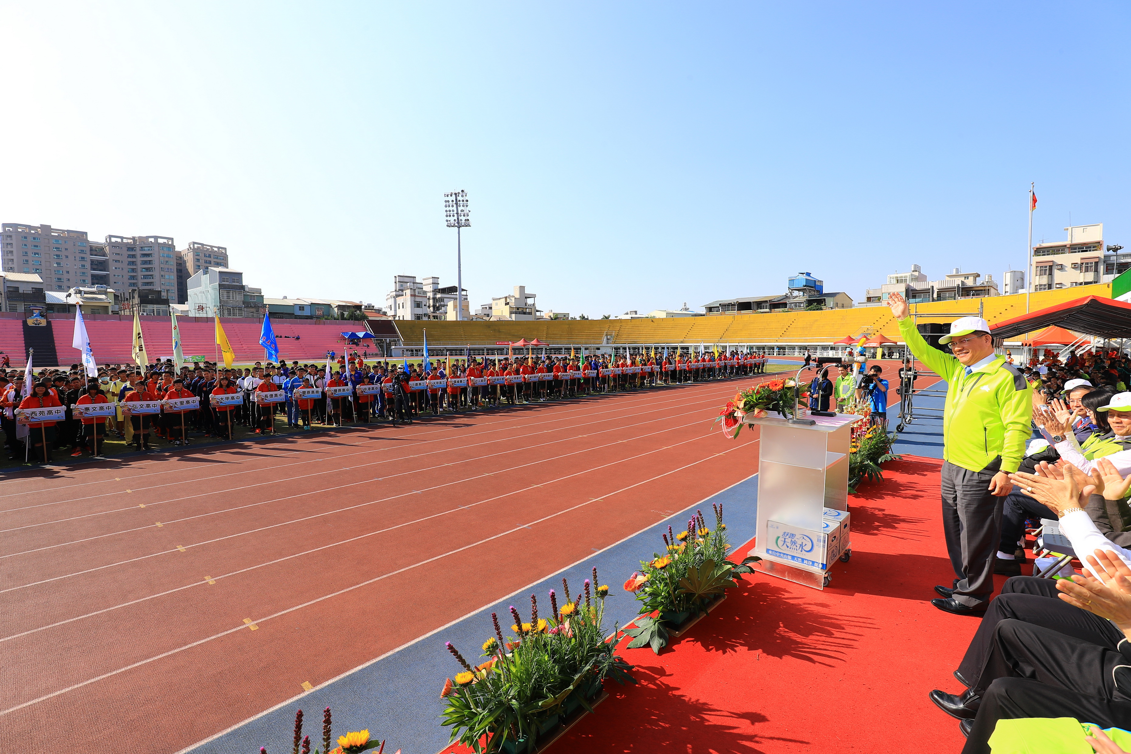 林市長表示,今年台中市中等學校運動會有106所學校、2,259位選手參與,透過這場賽會,也將選拔出參加於彰化舉行的全國中等學校運動會選手,期勉大家以運動家精神爭取佳績,也能結交志同道合的朋友。