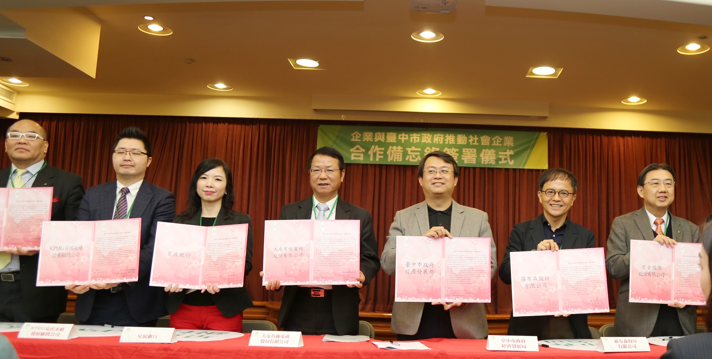 經濟發展局指出,為營造有益民間社會資源投入社會創新的生態環境,今日簽署的合作備忘錄連結了企業、銀行、醫院、會計師事務所與非營利組織;包括以社會回饋方式成立10年不關獨立書店的羅布森企業;宏全國際、順天醫院、光田醫院、永信藥品及弘道老人福利基金會等,均致力於推動老人福利與健康促進,展現企業社會責任;KPMG與星展銀行則長期關注台灣社會企業發展,星展銀行並推出社會企業專屬帳戶協助企業永續經營;惜福文教基金會則推動台中市中小學的食農教育及兒童系統思考,將食農教育從校園延伸至社區及家庭。
