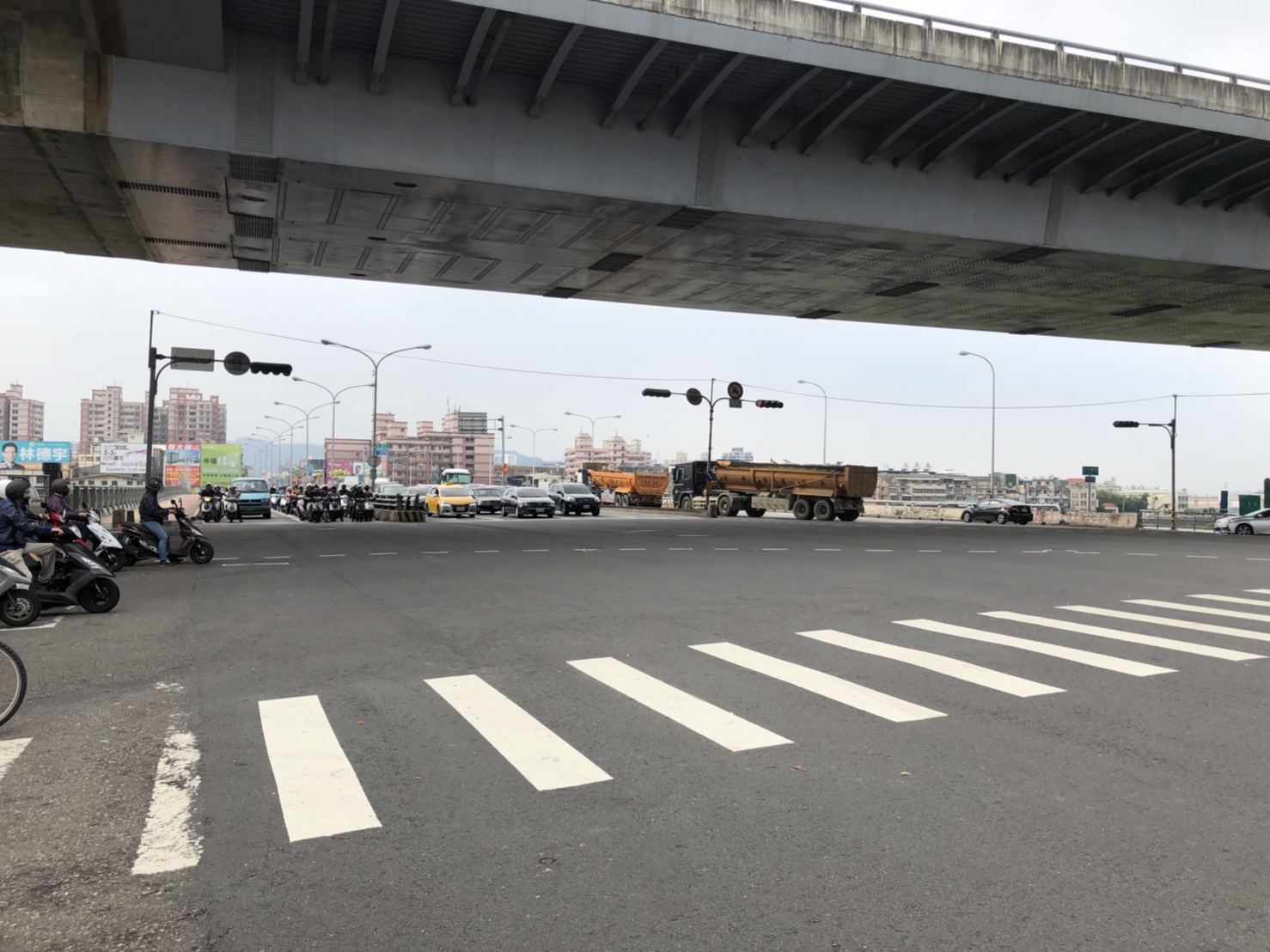 之後,一行人轉往國光路與環中東路口(大里橋)視察,該路段屬交通部公路總局管理,但交通局仍積極協調權管單位進行相關改善,包含改善道路舖面、擴大機車待轉區、延伸國光路左彎待轉區等措施,相信將可改善當地易塞車困擾。