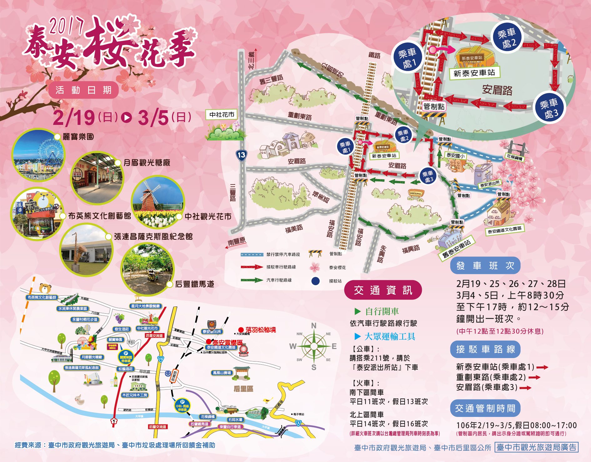 「2017台灣國際紀錄片巡迴展」(TIDF)巡迴展首站在台中,2月26日將獨家放映席捲各大國際獎項的史詩鉅作《家園—伊拉克零年》,並邀請《大路朝天》中國大陸導演張贊波、《風之波紋》日本導演小林茂兩位國際影人出席放映座談,與大家面對面交流;連假不妨來全台最美的派出所賞櫻!「2017泰安櫻花季賞櫻活動」,即日起至3月5日,在后里泰安派出所登場,市府也在假日推出「賞櫻巡迴接駁專車」,每15至20分鐘,自台鐵泰安新站門前發車,接送大家前往賞櫻!