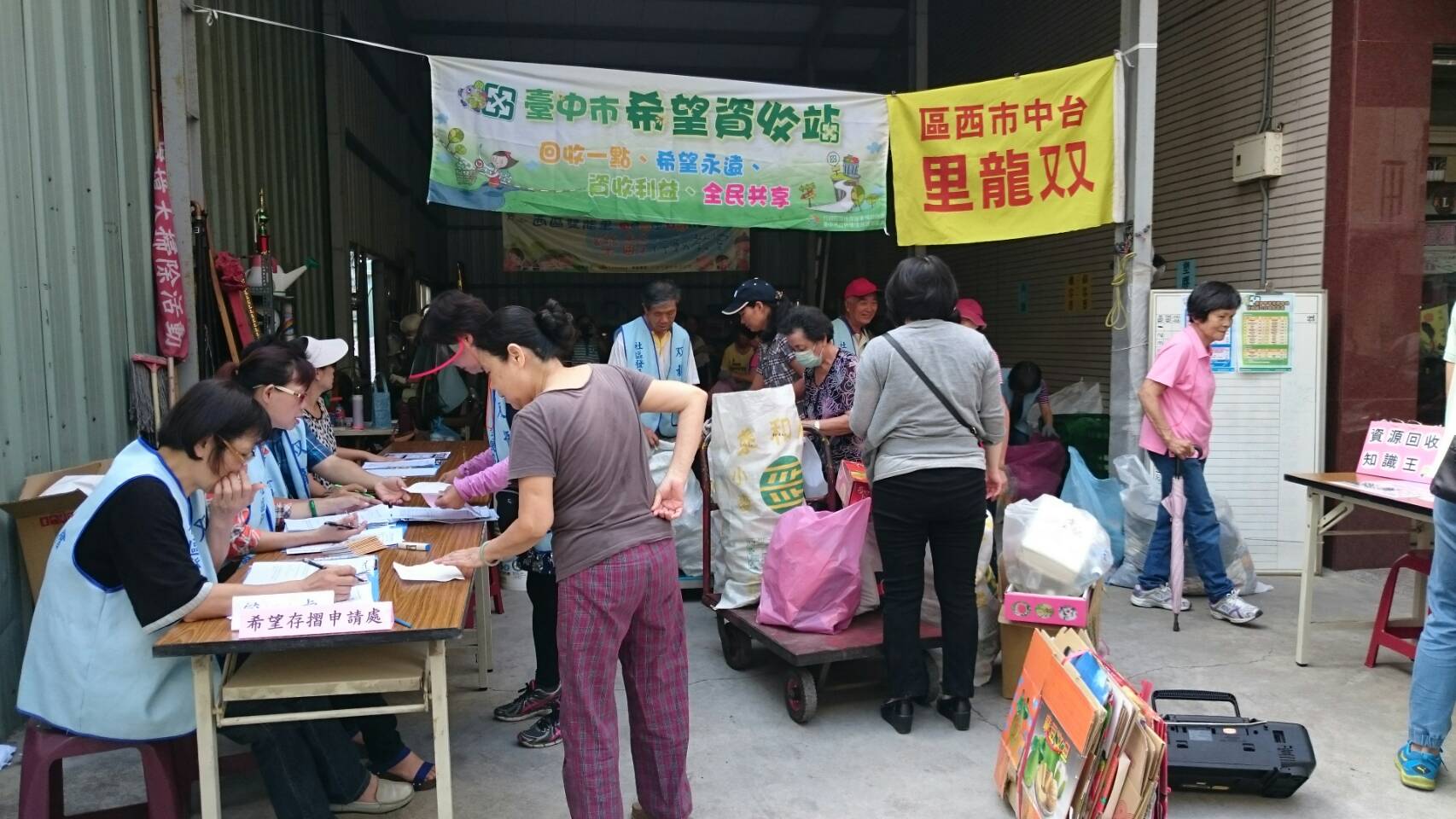 其中西區双龍里資收站除固定每週日進行回收兌換之外,里民交給轄內指定個體業者回收也可以秤重累積點數,里辦公處每月約可增加7,000元資收金做公益使用,一方面照顧關懷個體業者,里民也能參與兌換活動,一舉數得。