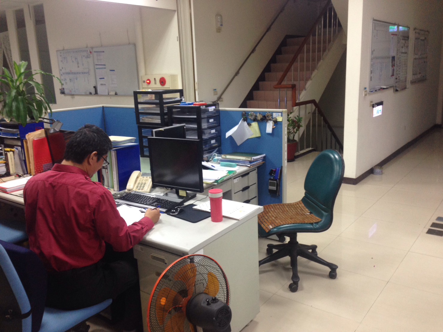 消防局第五大隊及大甲分隊使用同棟大樓,縣市合併後約有50位同仁,由於前年成立消防安全專責檢查小組,配置人員增加,辦公空間相當擁擠,新增的辦公桌只好放在走廊上,辦公環境相當克難。
