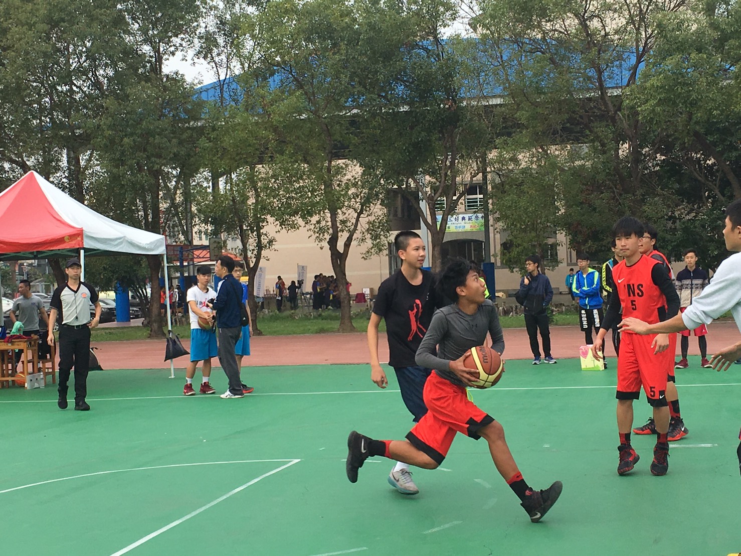 2017台中市國中小總會長盃籃球趣味錦標賽今(18)日於大里立新國中、立新國小熱烈開打,共有國中、國小男女生組,總計100隊、將近500人參加。教育局主任秘書方炳坤也到現場為學生加油打氣,鼓勵青少年透過正當休閒活動,讓身心健康成長,也期待帶動全民運動風氣,打造台中成為運動城市。