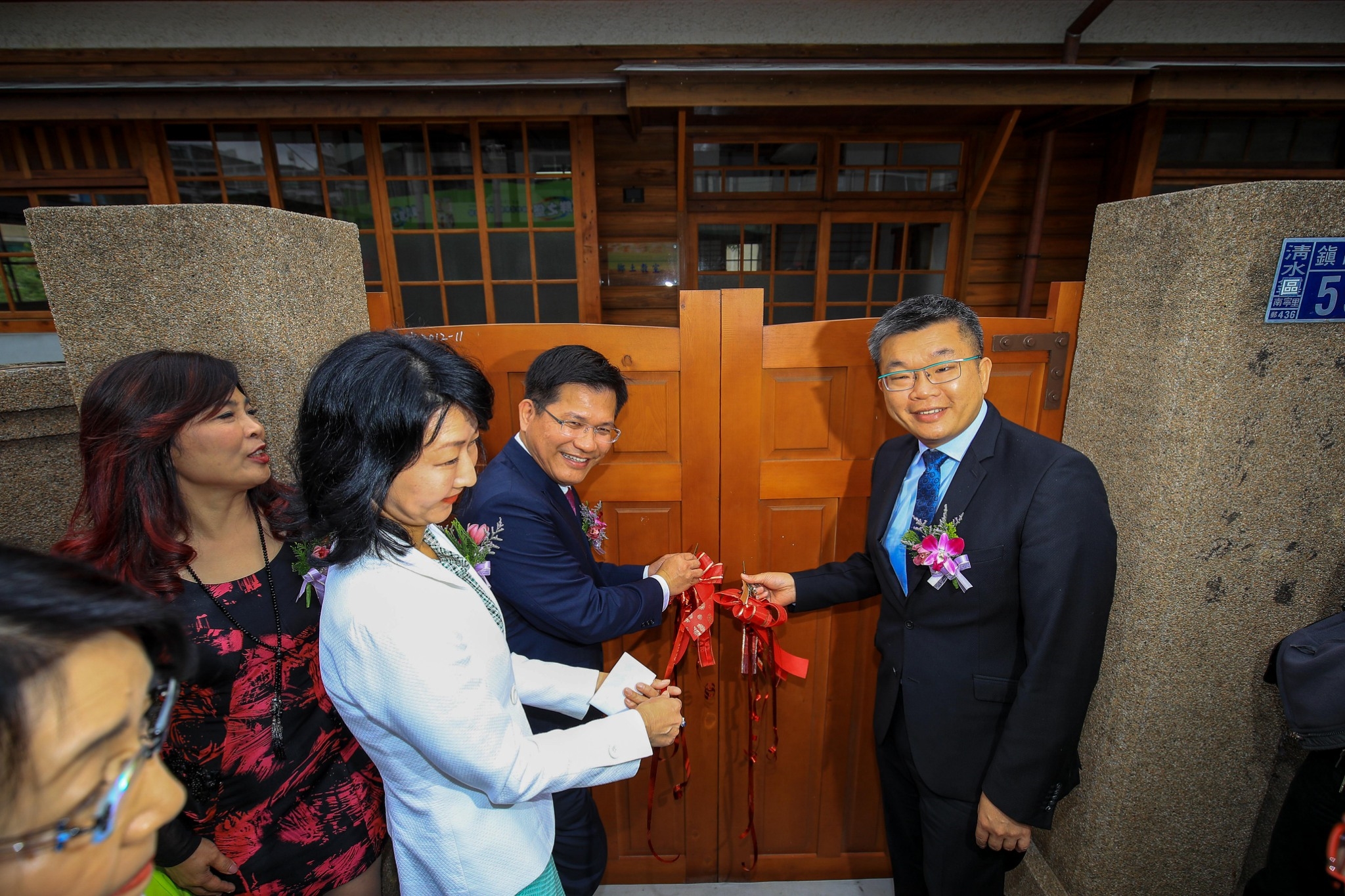 今日林市長、夫人廖婉如、立法院長蔡其昌、市議員王立任、文化局長王志誠、教育局長彭富源、清水區長張明昌等人,以及從日本遠道而來,代表日本眾議員也是外務省副大臣岸信夫出席的夫人岸智香子共同揭牌啟用,全校師生一起見證歷史一刻。