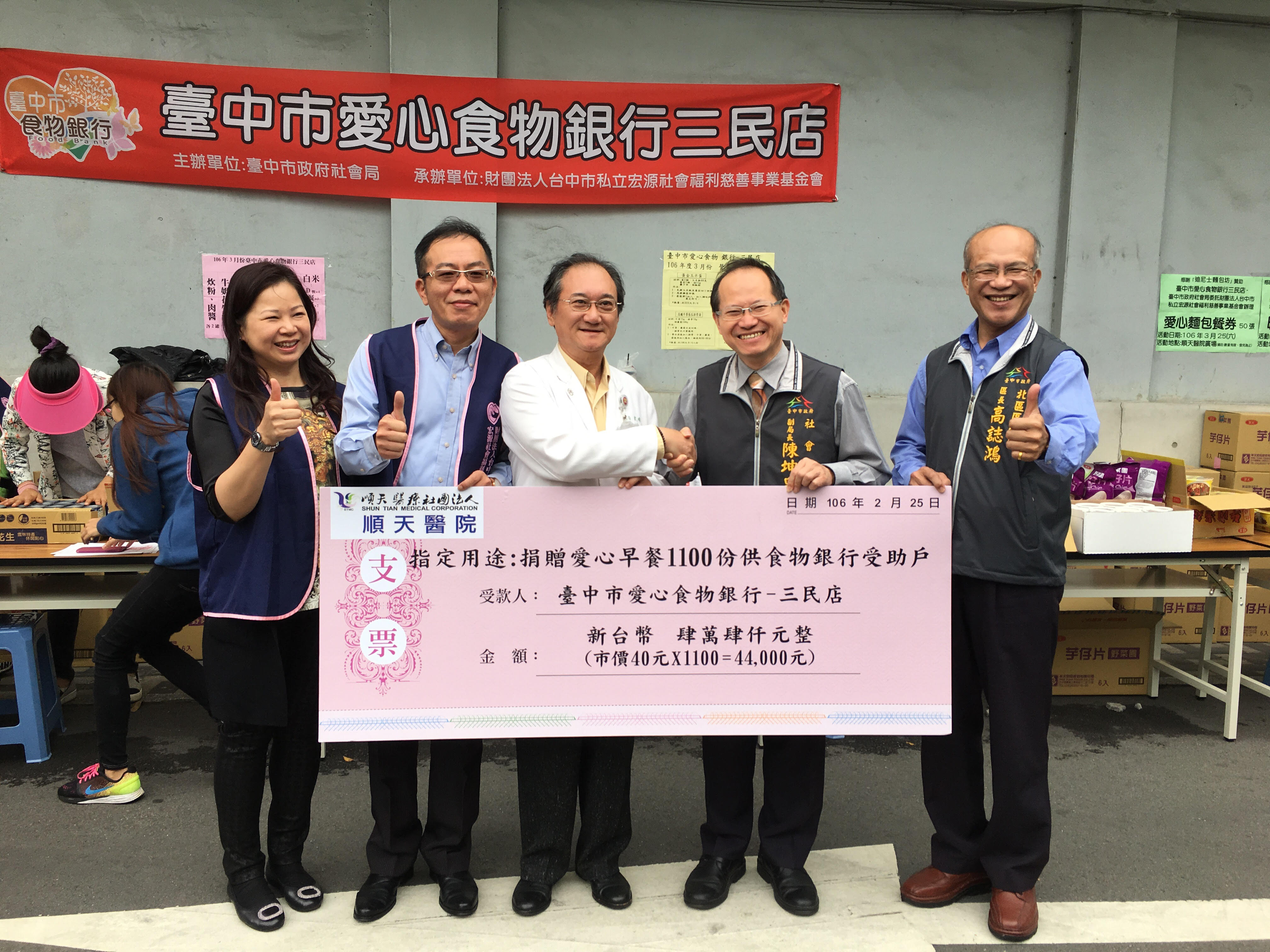 宏源基金會執行長林佳憓表示,「順天醫院」除提供早餐外,也提供受助戶免費義診、健檢服務,希望藉此活動,讓更多市民進一步認識食物銀行,基金會也將秉持辦理食物銀行聯盟店的專業品質,擴大服務全都會區受助戶。