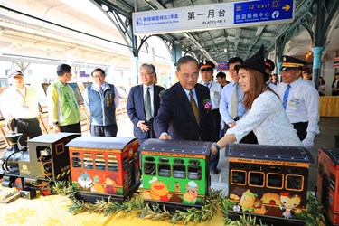 今日慶祝台中火車站舊站體落成100年記者會,由副市長林陵三、文化局長王志誠、中區區長黃至民、台鐵局副局長鐘清達、台中運務段長蘇鎮霖、台中火車站站長葉仁和、市議員李中、江肇國、邱素貞、立委黃國書服務處代表等人共襄盛舉,為車站切下百歲生日蛋糕,場面熱鬧。