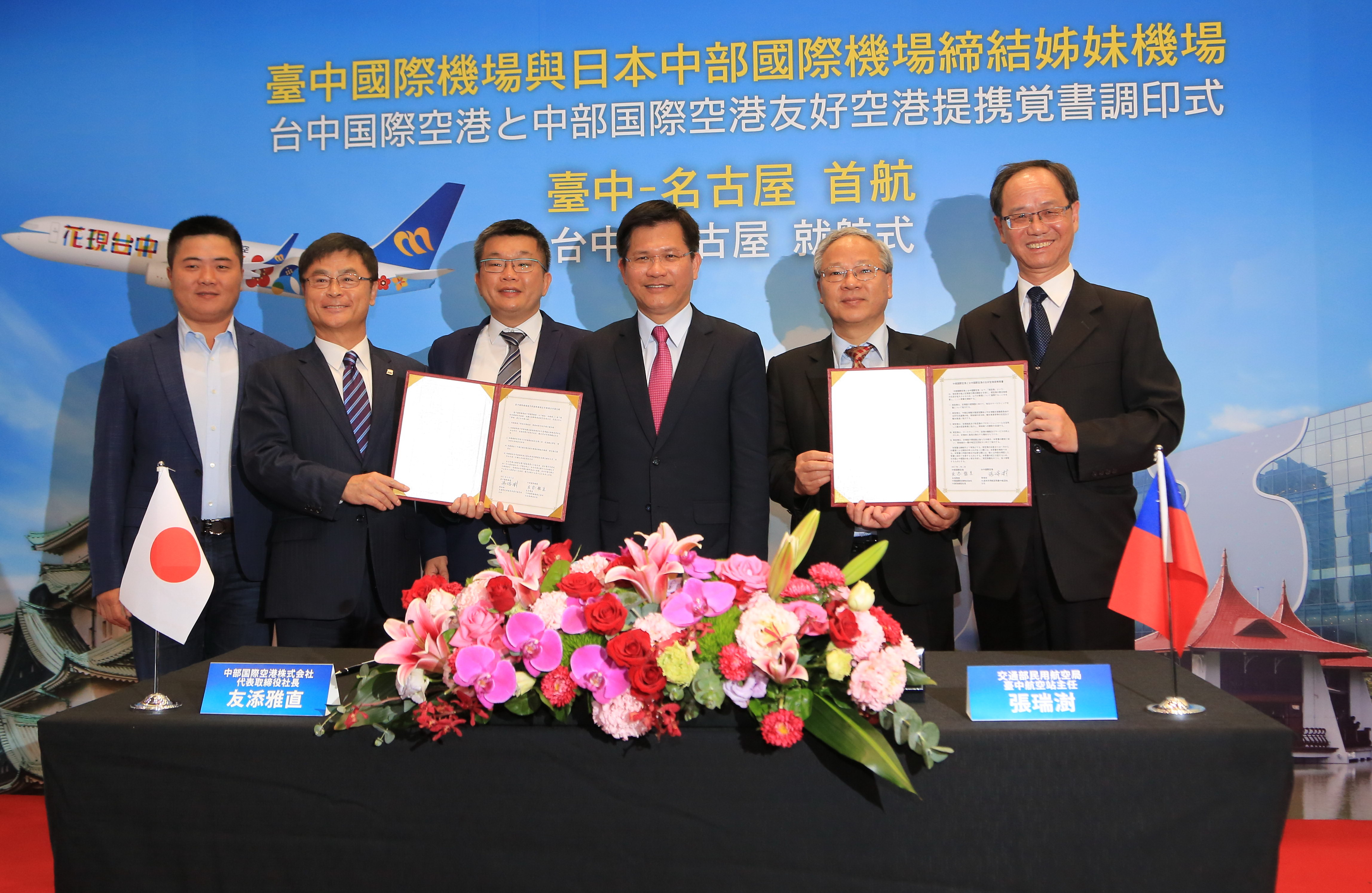 市長林佳龍表示,台中國際機場與名古屋中部國際機場今日簽約締結姊妹機場,是台中邁向國際化的重要里程碑,盼增進中台灣與日本交流外,也吸引更多觀光客到台中,並藉此契機讓台中國際機場各項設備更完備;而明年台中市將舉辦世界花博,也期待吸引百萬人次日本觀光客到訪台中。