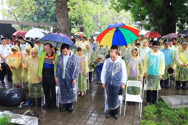 今日林市長在民政局長蔡世寅的陪同下,前往台中文學館參加言論自由日紀念會,市議員何明杰、何敏誠到場外,楊逵次子楊健及林獻堂孫媳婦林芳媖均出席,全員集體沈思1分鐘;農村武裝青年樂團及昔日丘丘合唱團團長邱晨等人也演唱紀念歌曲,共同緬懷、追念民主鬥士鄭南榕。
