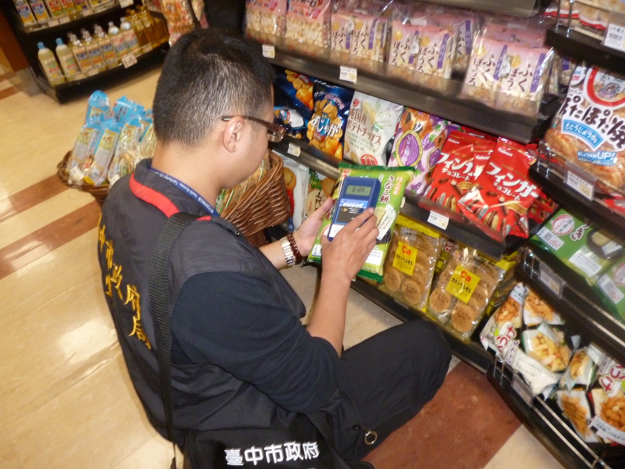 為持續把關日本輸台食品安全,台中市政府衛生局日前前往全市各日本食品進口商、量販店、賣場及百貨公司日本食品專區等處,稽查日本食品產地標示及篩檢食品輻射值,並以「手持式輻射偵測儀」及「碘化鈉閃爍計數儀」確認食品安全;此次共稽查30餘家,抽查百餘件日本輸入商品,稽查結果標示均符合規定,食品輻射偵測篩檢也未發現超過限量規定。
