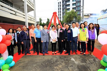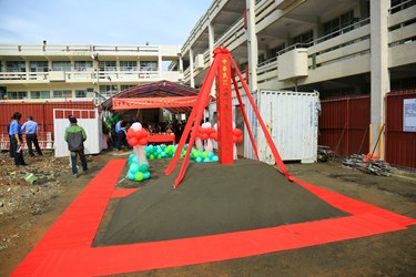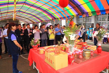 龍峰國小老舊校舍重建今日舉行開工動土典禮,林副市長在教育局副局長劉火欽、龍峰國小校長吳長益陪同下,與議長林士昌、立委顏寬恒、市議員劉淑蘭及等人一同祈福,市議員吳瓊華、陳世凱也派代表到場見證,祈求工程平安順利。