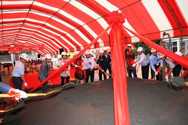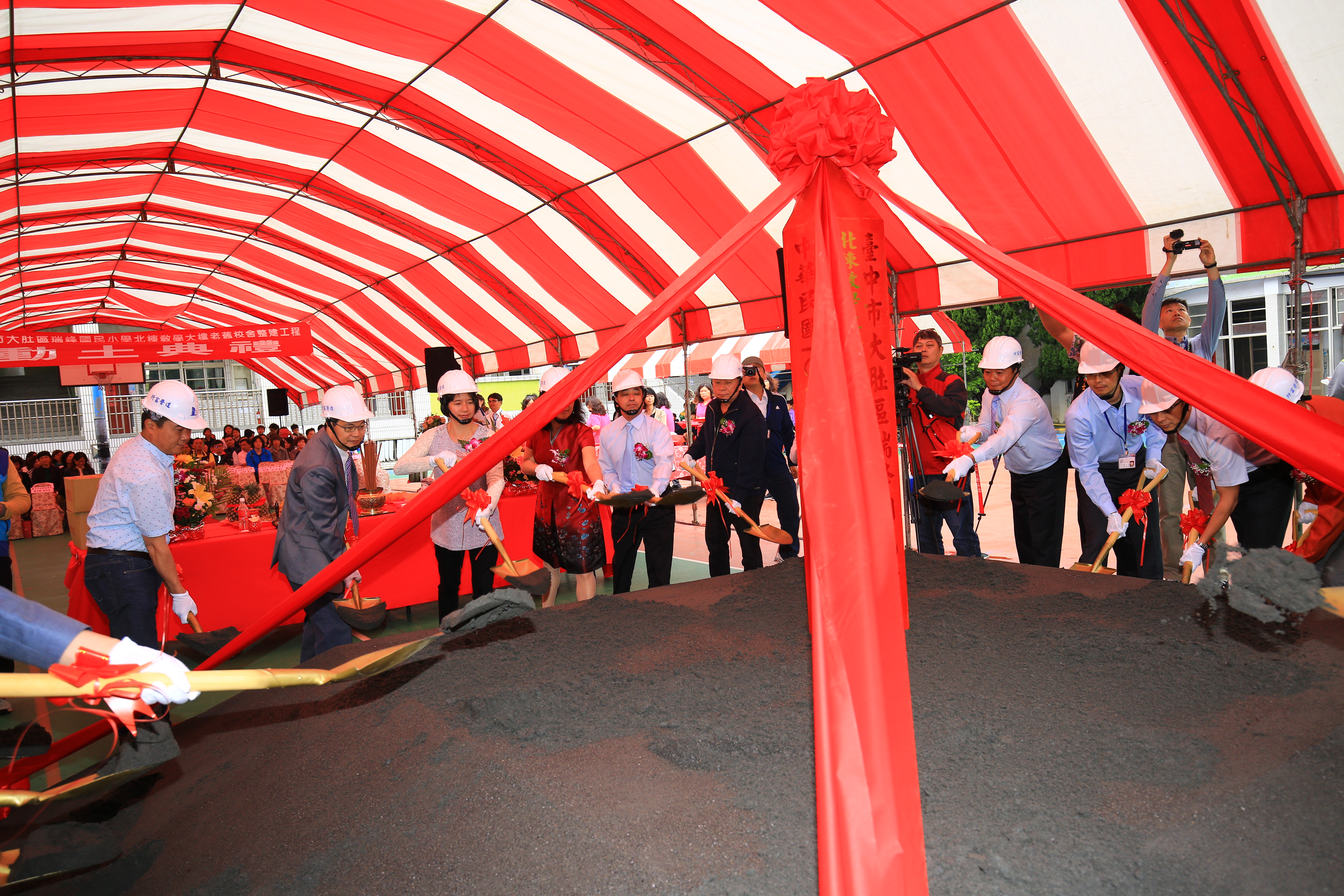 瑞峰國小今(12)日舉行北棟教學大樓老舊校舍整建工程動土典禮,在學校扯鈴隊及英語歌謠等表演下,副市長林依瑩與教育局副局長劉火欽、校長張文綺、議長林士昌、立委顏寬恆、市議員劉淑蘭等人共同進行動土典禮,祈求工程順利。
