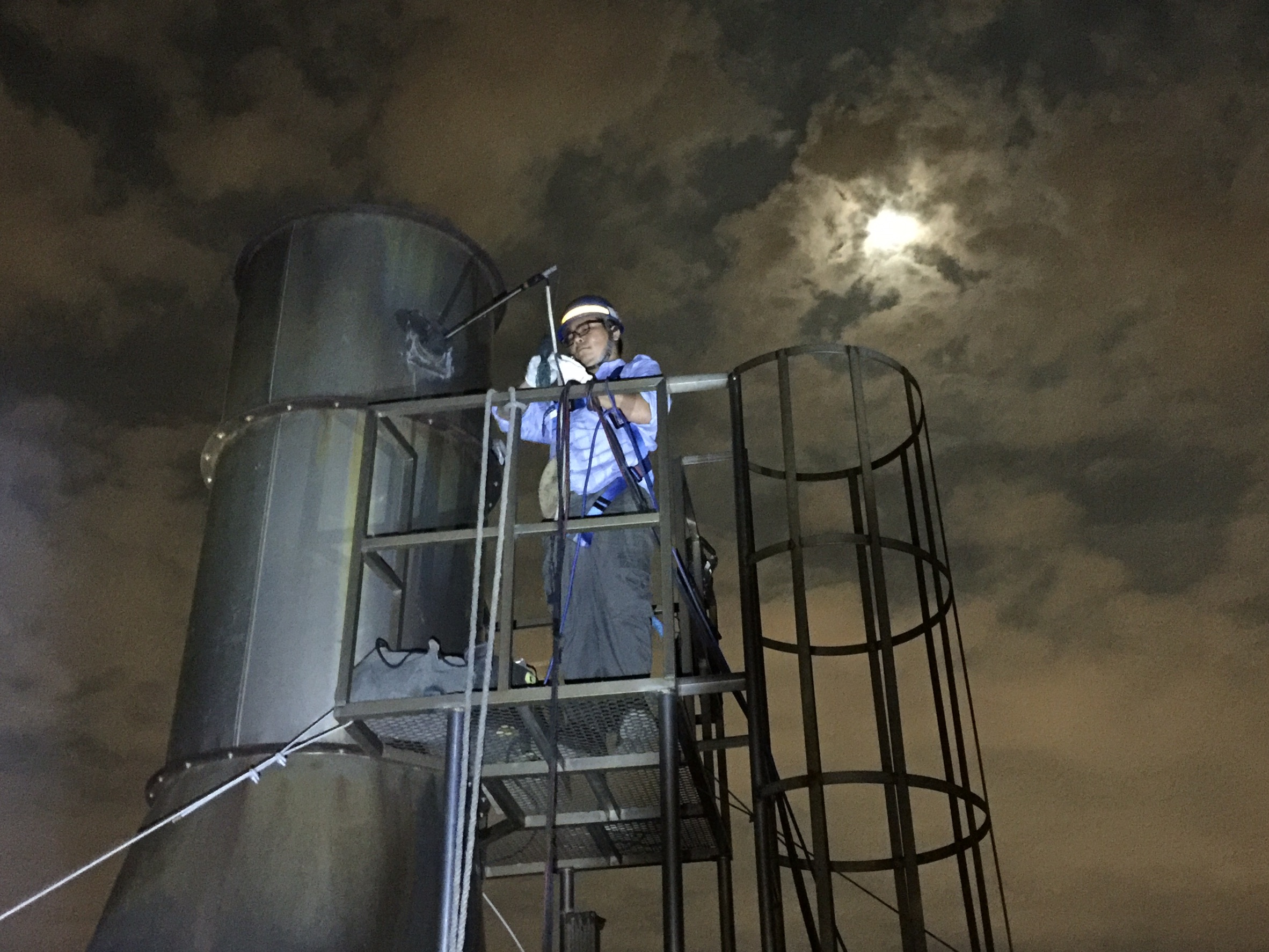 經日前確認偷排位置後,利用晚間執行強力稽查,查獲三家不法廠家,包括第一家位於工業區16路的平版印刷廠,排放口經火焰離子偵測器偵測出有揮發性有機物(VOCs)排放,測值達53.78ppm,其廢氣未經汙染防制設備處理就逕行排放;另外,該廠印刷製程使用水性上光油等非屬許可使用物料,現場也依法告發,總計裁罰20萬元,命業者立即改善。