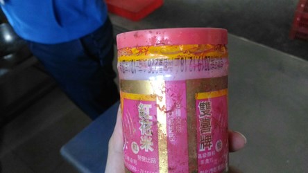 這次衛生局會同食藥署中區管理中心人員前往豐原區國運包子店執行專案稽查,當場發現發酵箱上方有一瓶已拆封使用的紅花米且外包裝載明「高級顏料 非食用」字樣;張姓負責人坦承使用於自製菜包上做小紅點記號以與肉包辨別,經現場稽查後已知不可使用該染料,已立即改用食品原料。