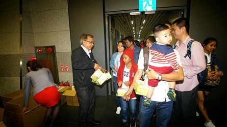 近日陸續有3班包機從金邊直飛台中國際機場,觀光旅遊局特別準備太陽餅等伴手禮,迎接首度踏上台中機場的柬埔寨觀光客,並邀請柬埔寨新住民穿國服拿柬埔寨國旗、歡迎布條迎接,機場檢疫人員也以柬埔寨話請遊客脫帽量體溫。
