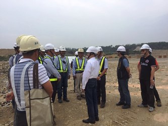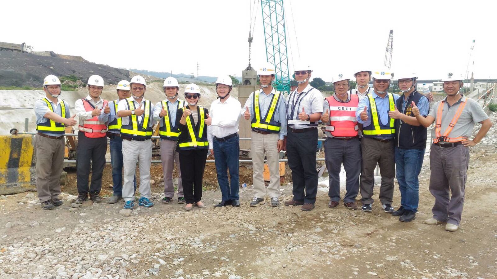 建設局長黃玉霖昨(18)日前往「中科南向聯外道路新闢跨越大甲溪橋梁及南引道工程」及「國道四號神岡系統交流道跨越大甲溪月眉西側南向聯絡道(新闢大甲溪橋梁及引道段)」視察工程進度並關心汛期期間工地安全。
