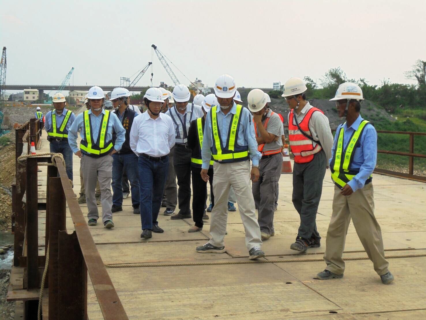 黃局長讚許工程單位施工效率,也關心汛期期間工地安全;他表示,兩座橋梁工程需建立與上游橋梁及大甲溪管理單位的聯繫窗口,隨時監控水位警報,也要現場演練遇海上陸上颱風警報後,模擬成立臨時指揮中心及臨水區施工機具與人員撤離機制,務必在工地安全第一前提下,加速工程進度推展。(4/19*6)*建設局
