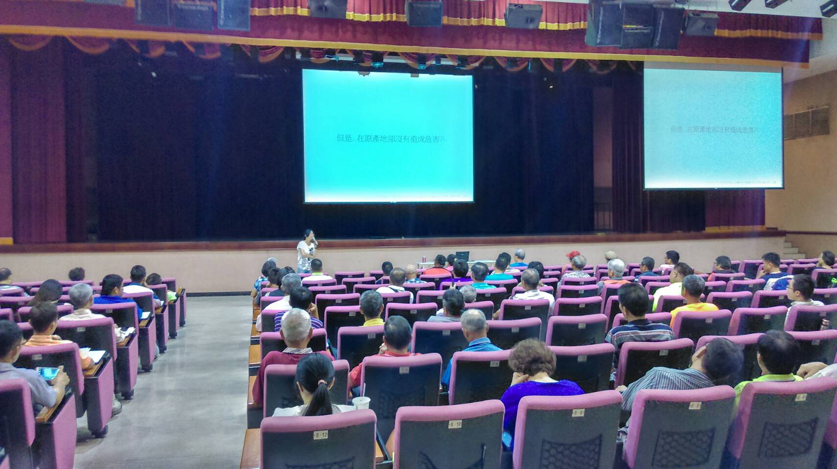 為協助農友防治福壽螺,台中市政府農業局18日在陽明市政大樓舉辦「福壽螺自然防治」講座,邀請「福壽螺退散計畫」發起人林芳儀擔任講師,分享誘捕福壽螺的方法,吸引約230人參加,現場提問、討論熱絡。