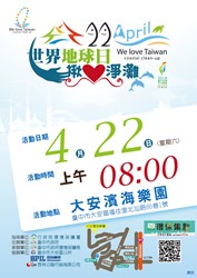 4月22日「世界地球日」當天在大安濱海樂園將有淨灘活動,邀您守護美麗的海岸線及維護海岸清潔,一同「揪愛淨灘」打造全台最乾淨的海岸線,歡迎前往現場參加!本週還有不少展覽、演講等活動,更多資訊,請見「中市週末活動看板0422_0423」(4/21*6)*新聞局