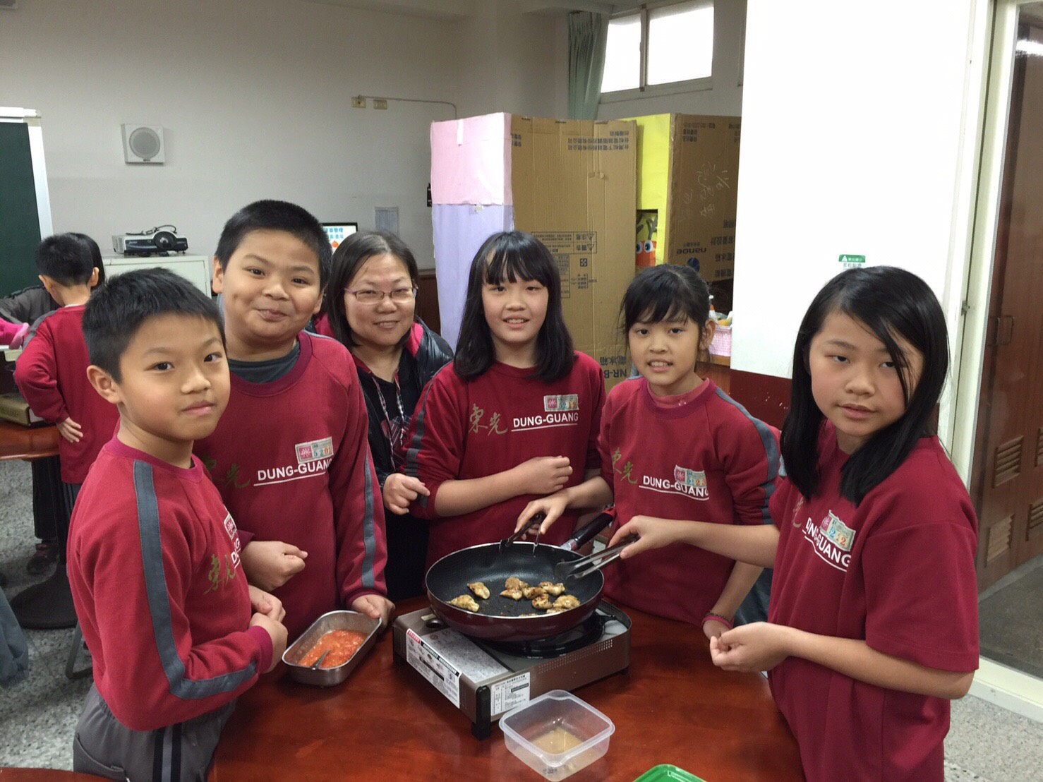 東光國小營養師洪菱窕表示,孩子們常對蔬菜有排斥感,透過「食育教室」實作課程,可以翻轉他們對蔬果的既定印象,例如最近是番茄的盛產季節,便設計了「肉捲入番茄起司飯盅」實作課程,先帶領孩子認識番茄的營養價值,以及當令當季蔬菜營養價值及均衡飲食的重要性。