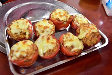 接著,再帶領孩子實作烹煮,將羅勒口味的煎肉拌入酸甜碎番茄及乳酪,拌炒熱騰騰的米飯,做成番茄飯盅,一口咬下的濃濃牽絲感,翻轉了孩子對番茄的想法;許多孩子品嚐自己親手製作的番茄飯盅後,都紛紛表示酸甜滋味,一吃難忘,對番茄不好的印象完全改觀。