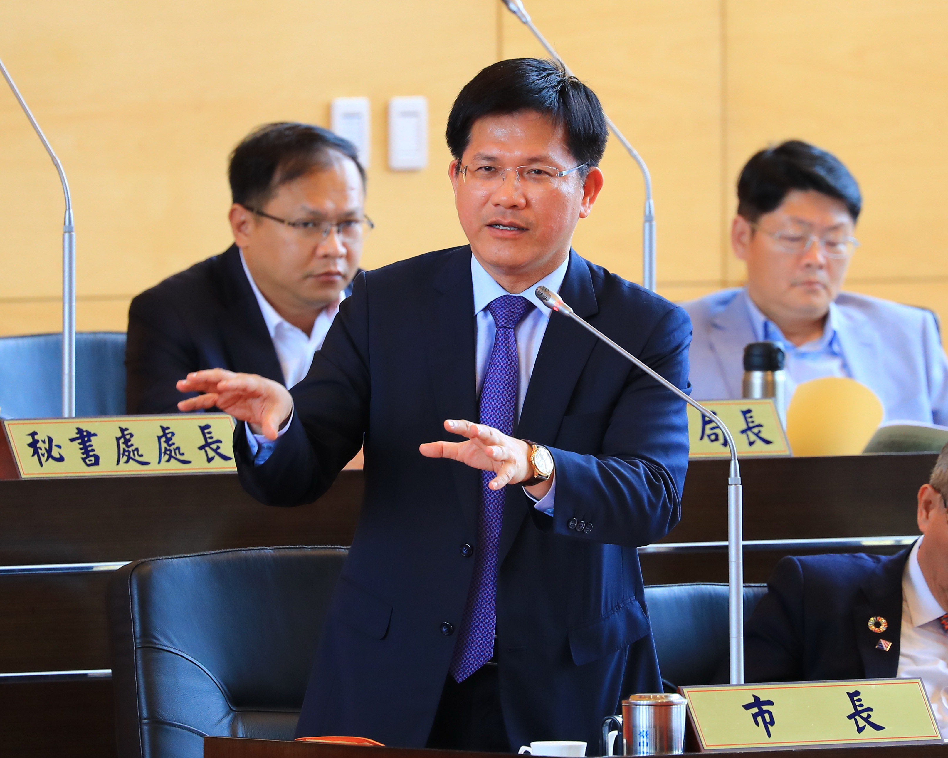 台中市議會今(2)日進行第2屆第5次定期會,市府環保局長白智榮進行「台中市空氣汙染減量工作執行項目與火力發電減排成效」專案報告,市議員謝明源、范淞育、吳瓊華、黃馨慧、楊典忠、楊正中、李天生、邱素貞、陳政顯、劉淑蘭、張廖乃綸、陳清龍、顏莉敏、李中、劉士州等人都關心空汙減量議題。