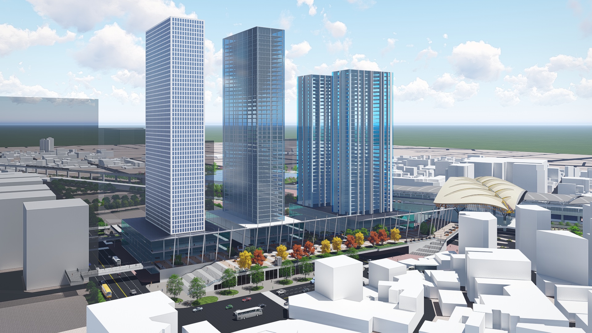未來的國際創客建物,將直接在空中串聯車站專用區二樓戶外景觀平台、交通轉運站、北側干城商業地區及南側鐵道文化園區、舊倉庫群等,搭配綠空鐵道將人潮延伸至台糖湖濱生態園區,將使該地區成為兼具交通便利、文創觀光、商業及高生活機能的新興城市亮點。