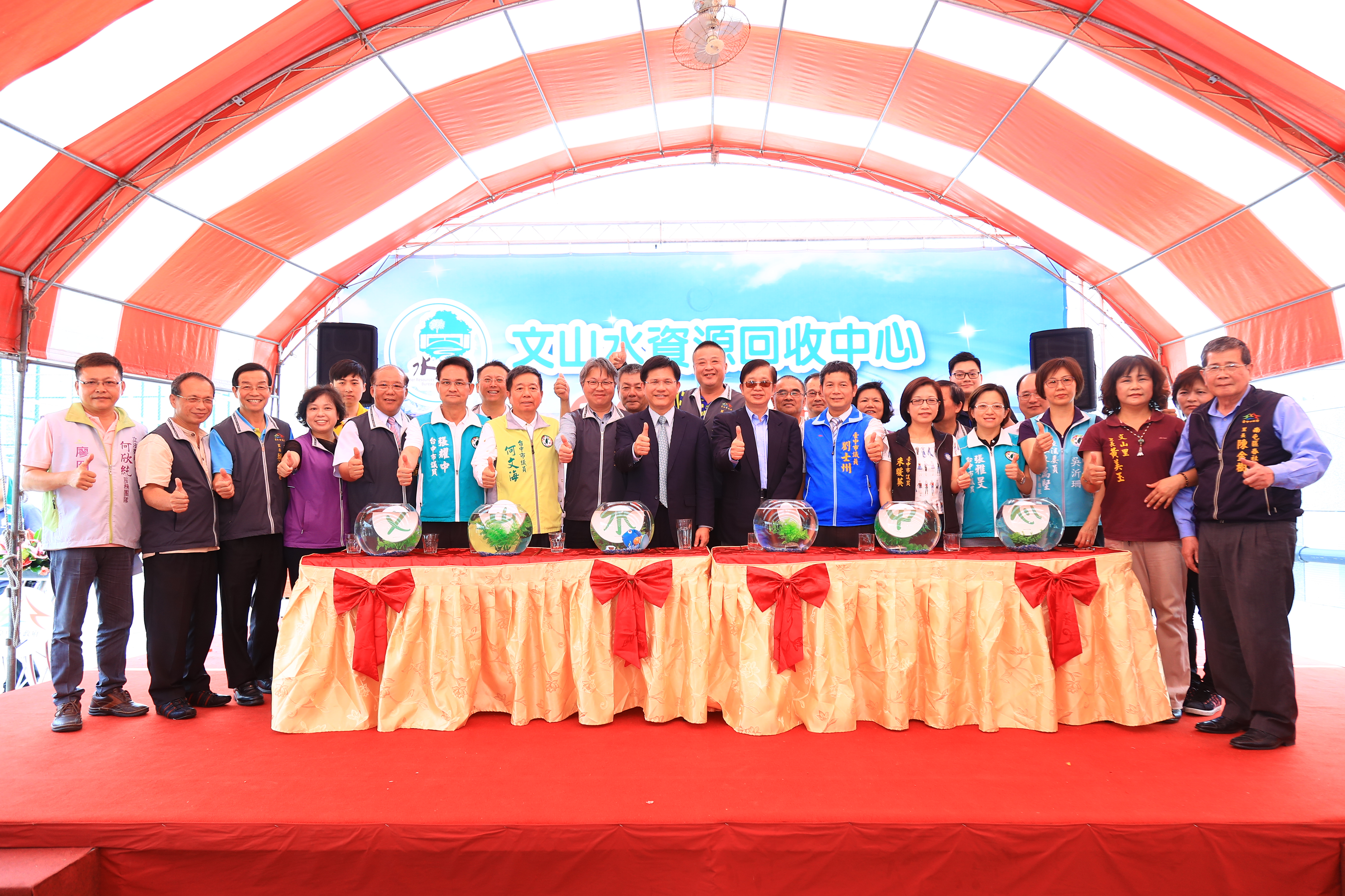 今日文山水資中心通水啟用典禮由市長林佳龍主持,內政部常務次長邱昌嶽、營建署下水道工程處長陳志偉、水利局長周廷彰、市議員何文海、張耀中、朱暖英、劉士州、張雅旻都親臨現場,立委張廖萬堅、盧秀燕、何欣純、顏寬恒也都派員蒞臨,還有區長及多位里長都到場,熱鬧非凡。啟用典禮後,林市長也到籃球場為包括SBL球星吳建龍在內的在地球隊開球,邀請市民一起到水資中心運動。