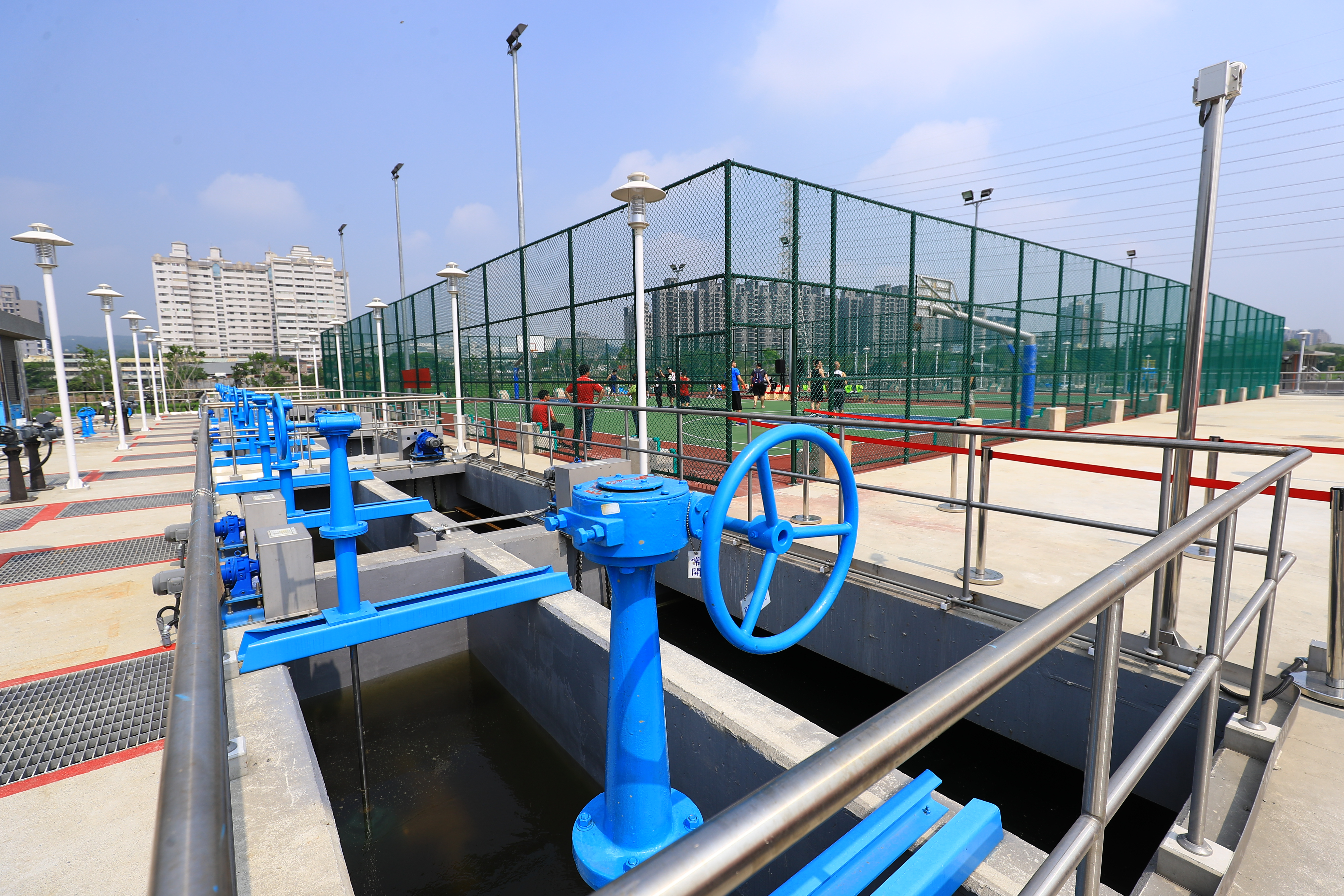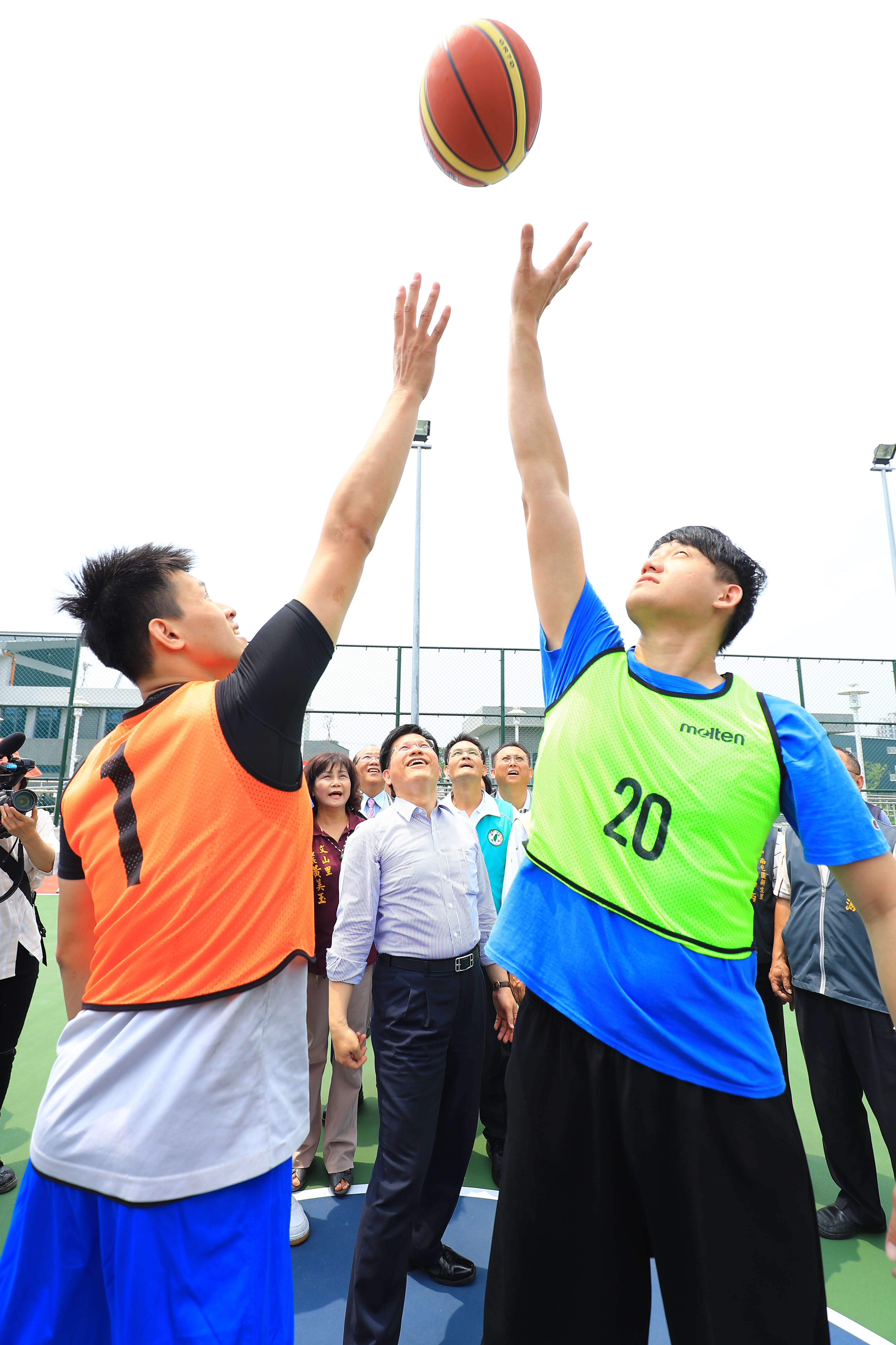 台中市的文山水資源回收中心今(4)日啟用通水,每日可處理2.9萬噸汙水,中心也充分利用空間,在終沉池上方設置籃球場、網球場各一座,免費供民眾使用,一旁也有0.8公頃親水綠地,讓鄰近居民多個休憩空間,成為水與綠的新秘境。市長林佳龍在典禮後也親自到籃球場為包括SBL球星吳建龍在內的在地球隊開球,邀請民眾前來走走動動。